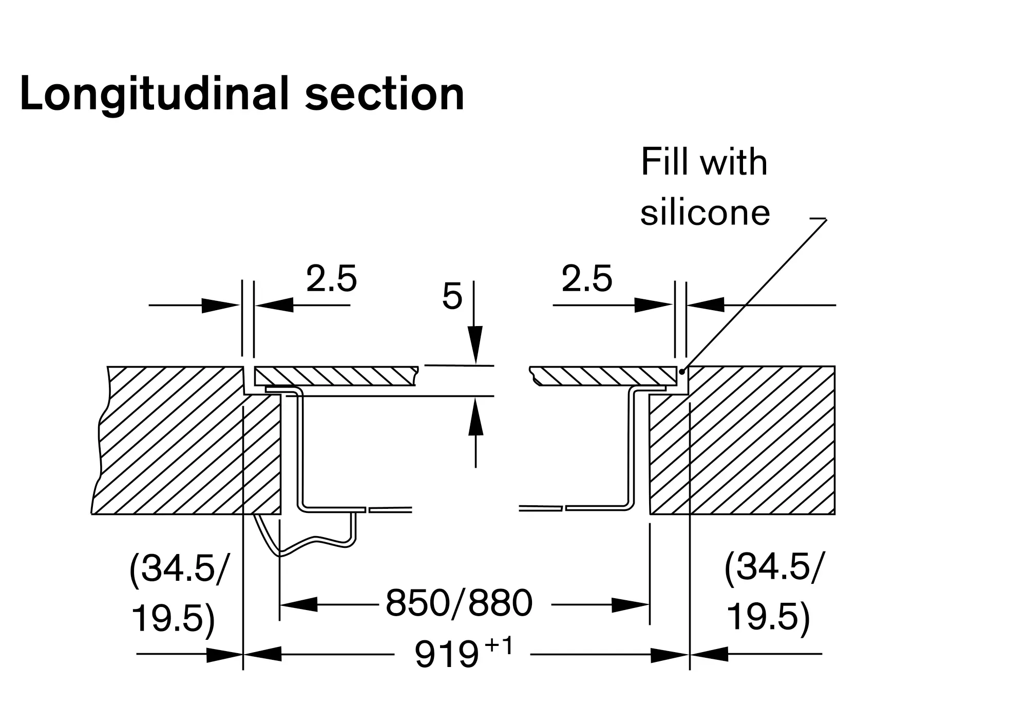 Installation in a 85 cm niche or a 88 cm niche with the included spacers.