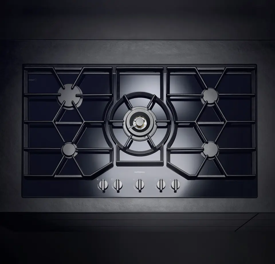 The cooktop can be conventionally built into worktops or flush integrated into stone worktops.
