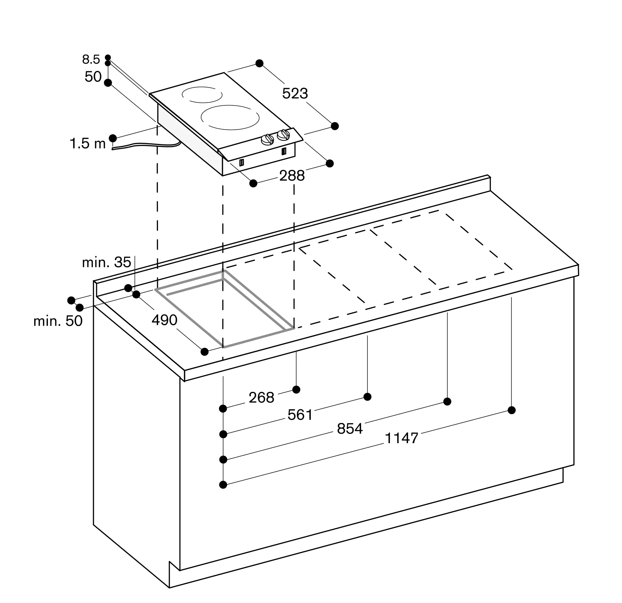 1 induction cooking zone ΓΈ 15 cm (1400 W, with booster 1800 W).