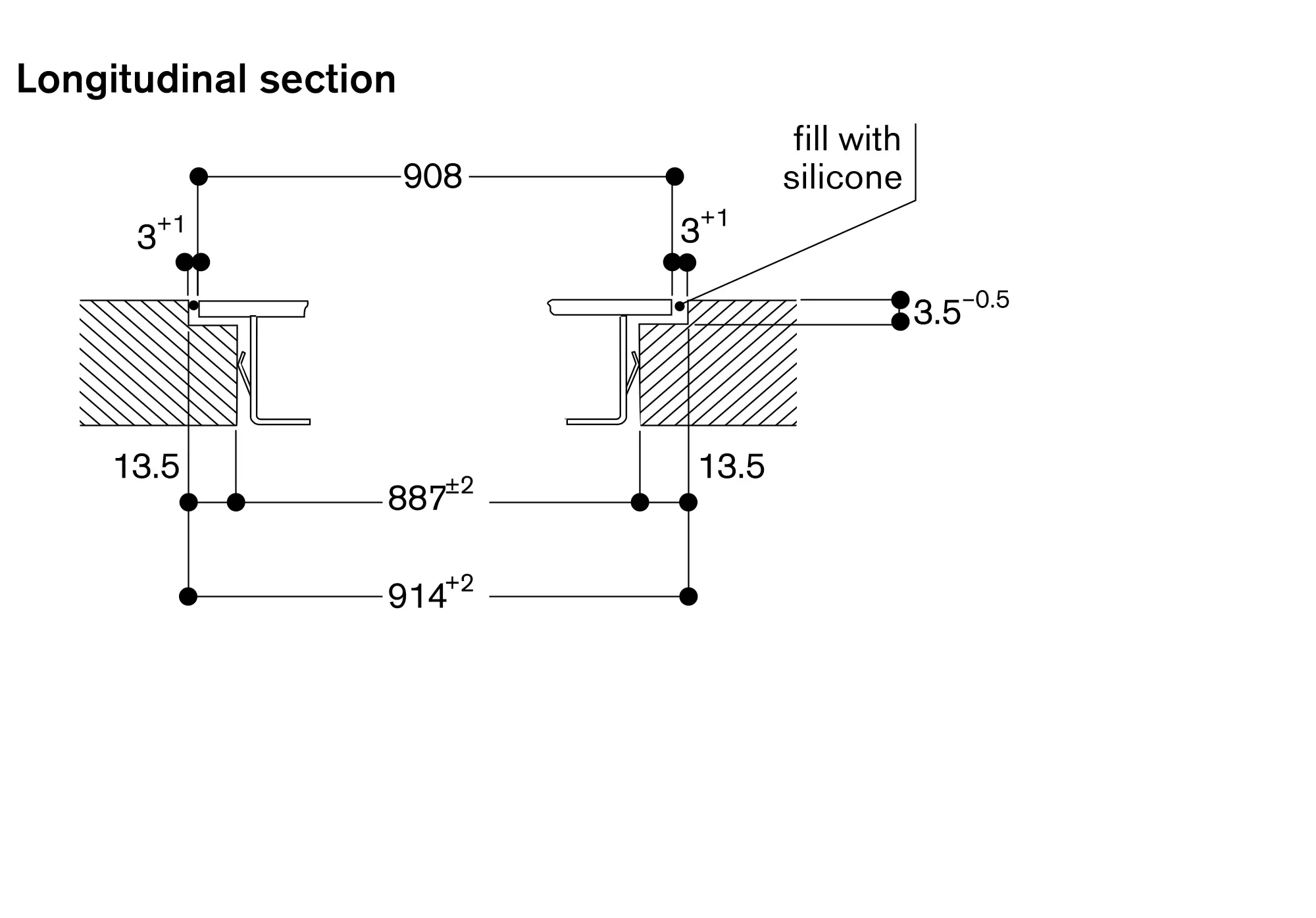 The groove must be continuous and even, so that uniform placing of the appliance on the gasket is ensured. Do not use discontinuous lining.
