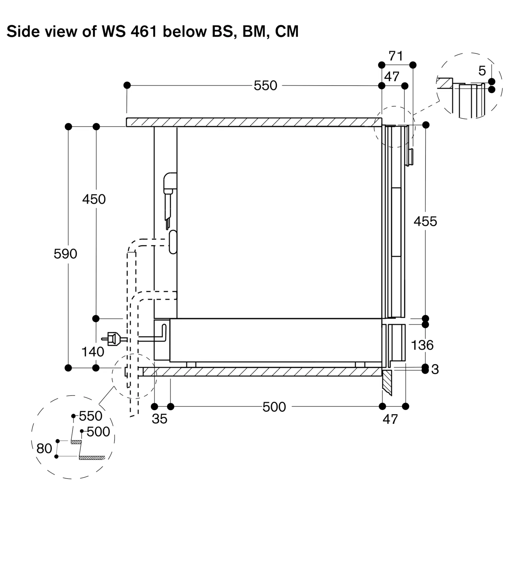 Installation of BS/BM/CM directly above WS in 59 cm niche without intermediate floor.