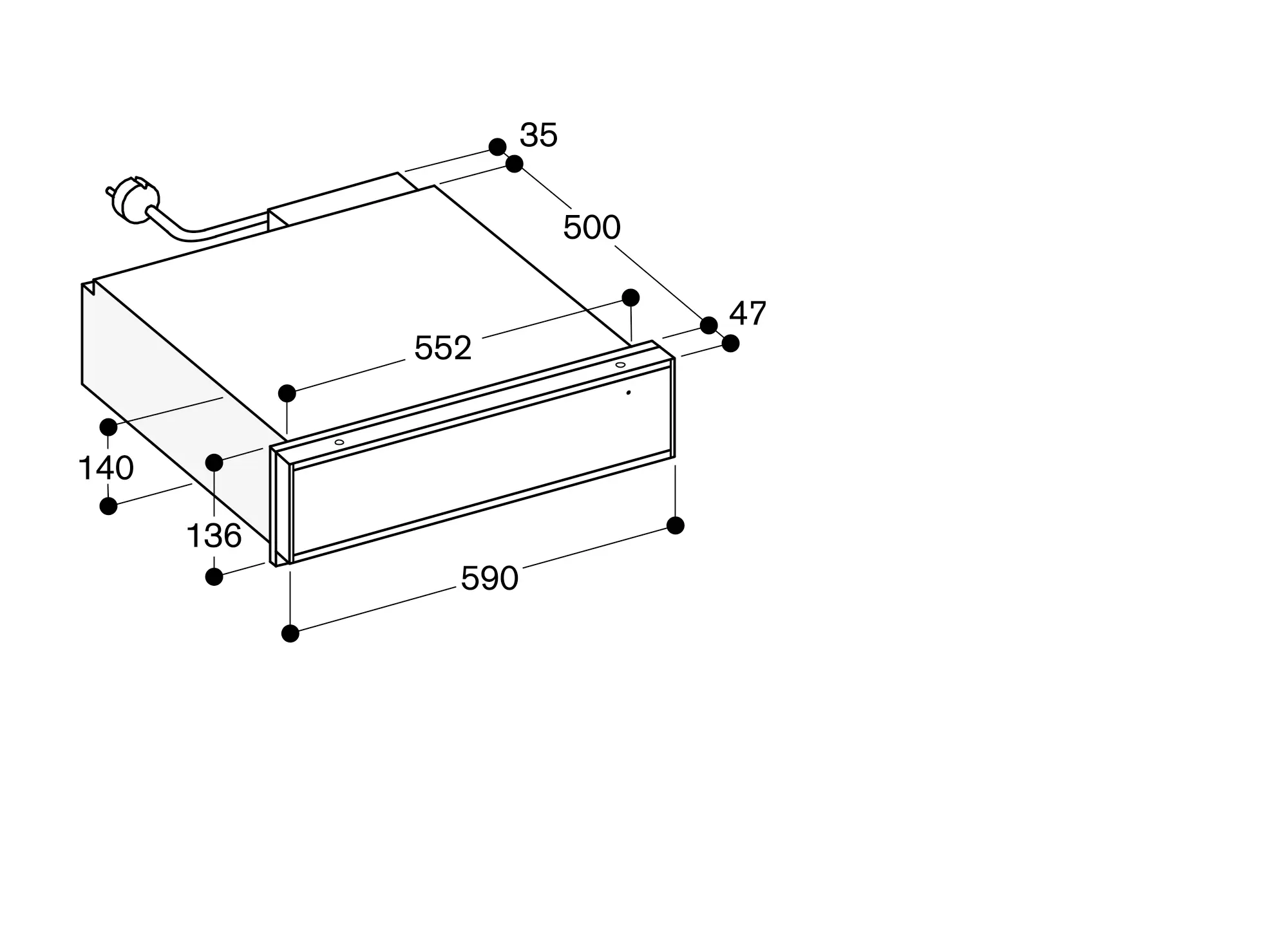 The panel surface of the appliance extends 47 mm from the furniture cavity.