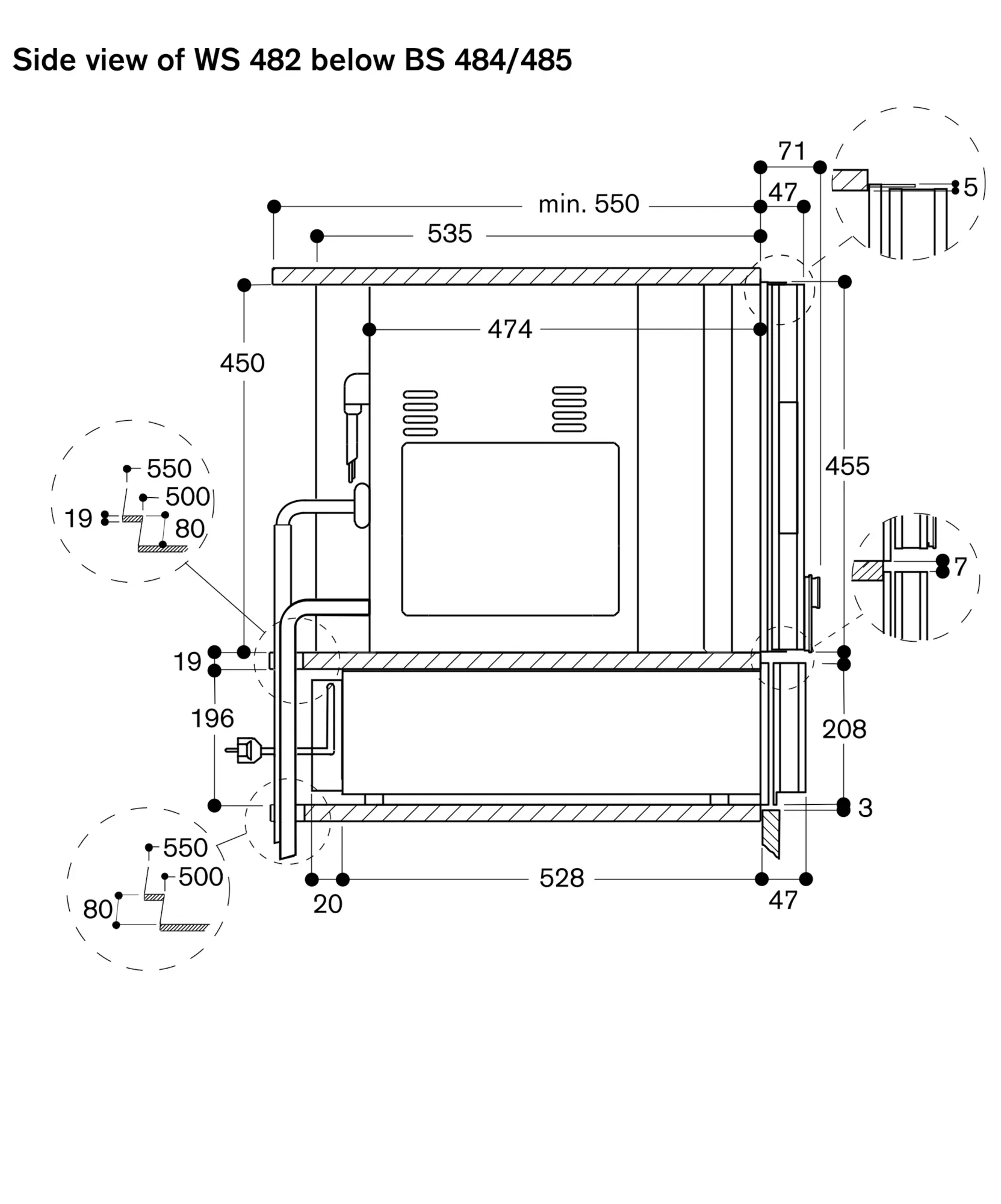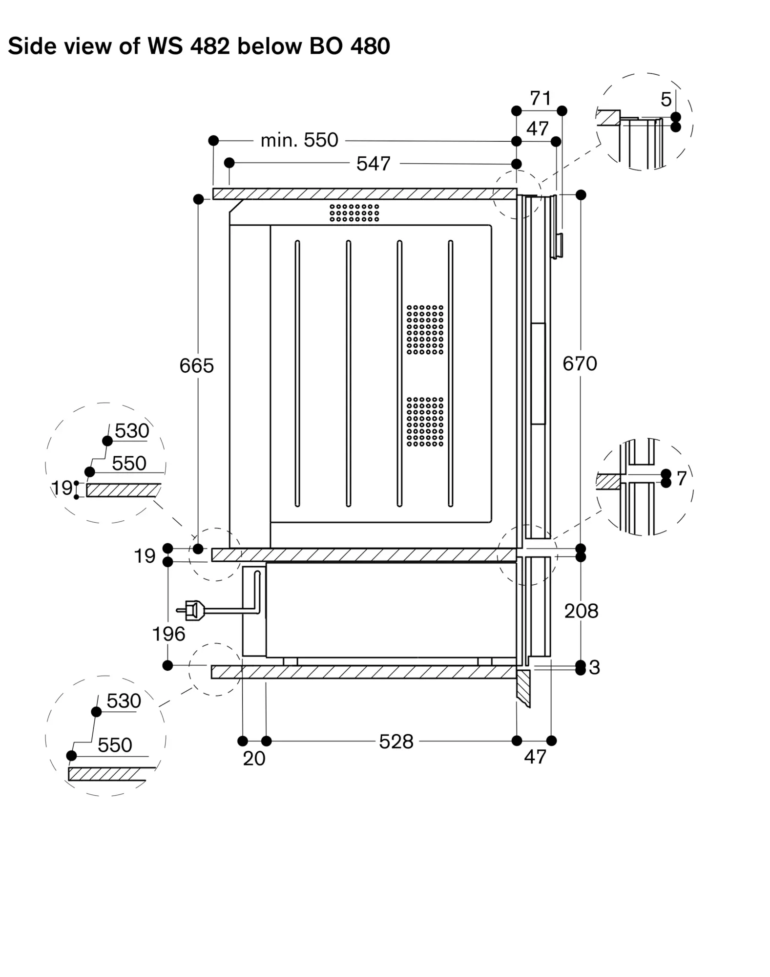 Installation of BS above WS in 66,5 cm niche with intermediate floor (gap of 7 mm between WS and BS).