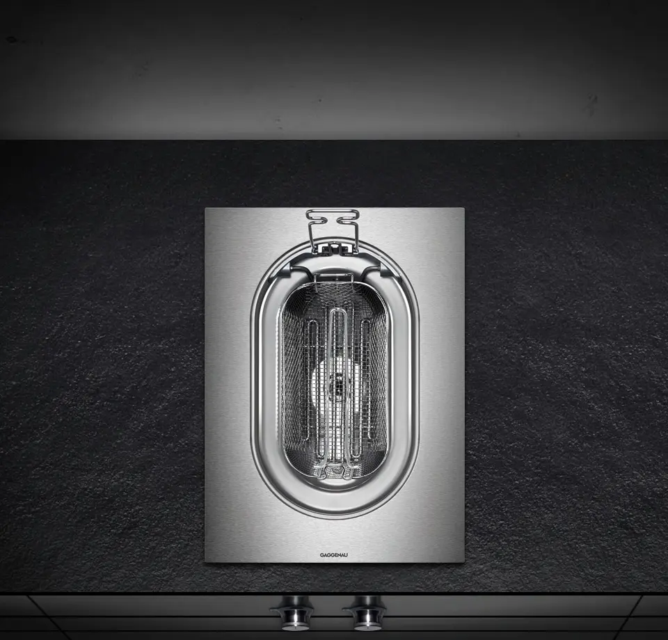 Control knobs with illuminated ring, oil/fat selection and temperature marking.