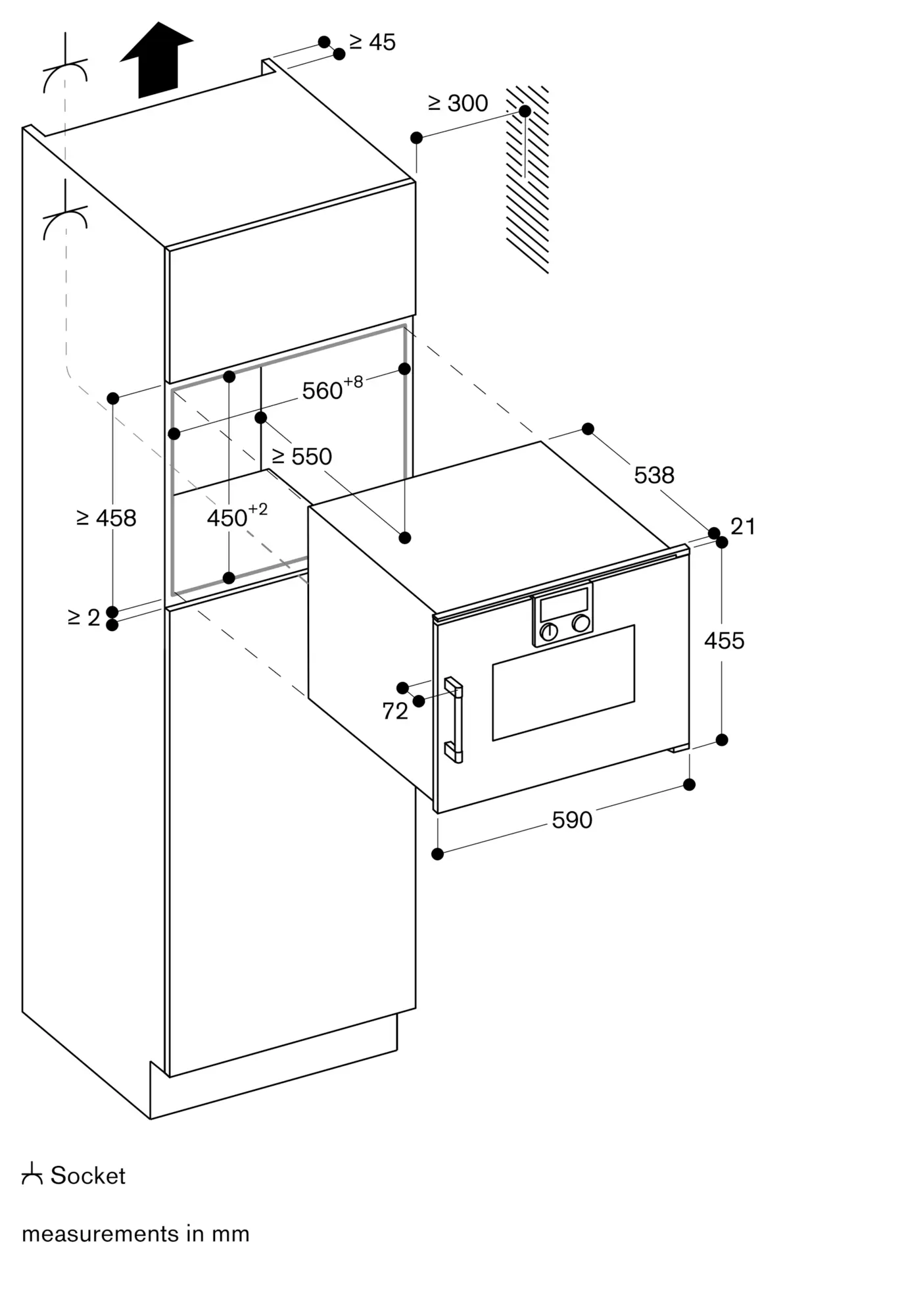 Consider the overhang, incl. the door handle, when planning to open drawers next to the appliance.