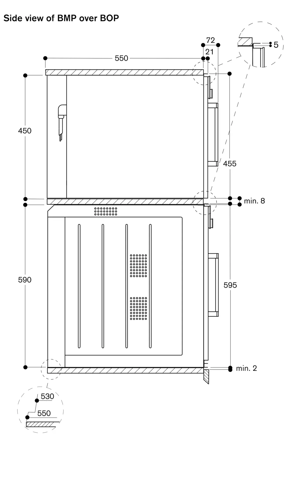 Necessary lateral gap between appliance door and furniture panel of min. 5 mm.