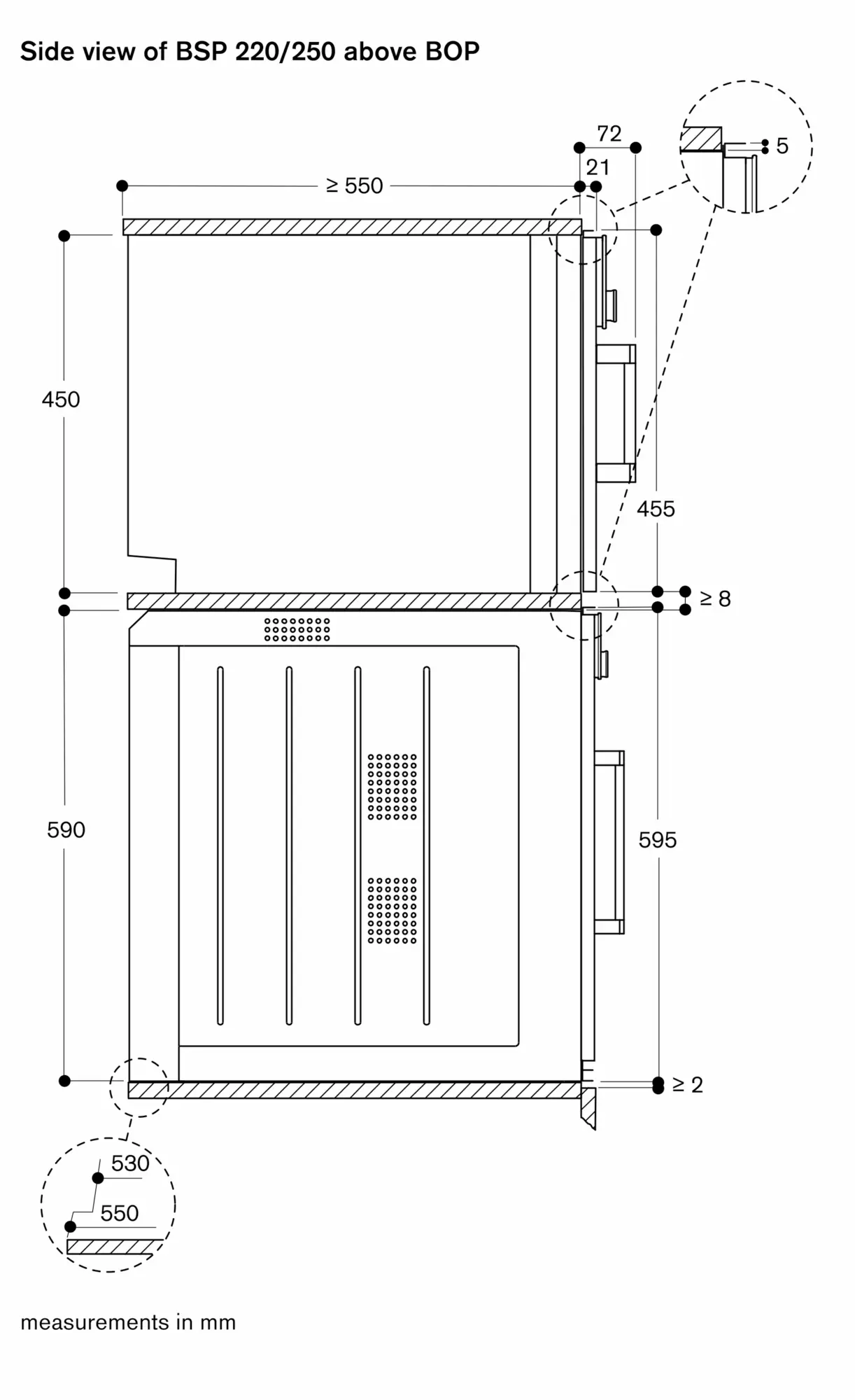 Necessary lateral gap between appliance door and furniture panel of min. 5 mm.