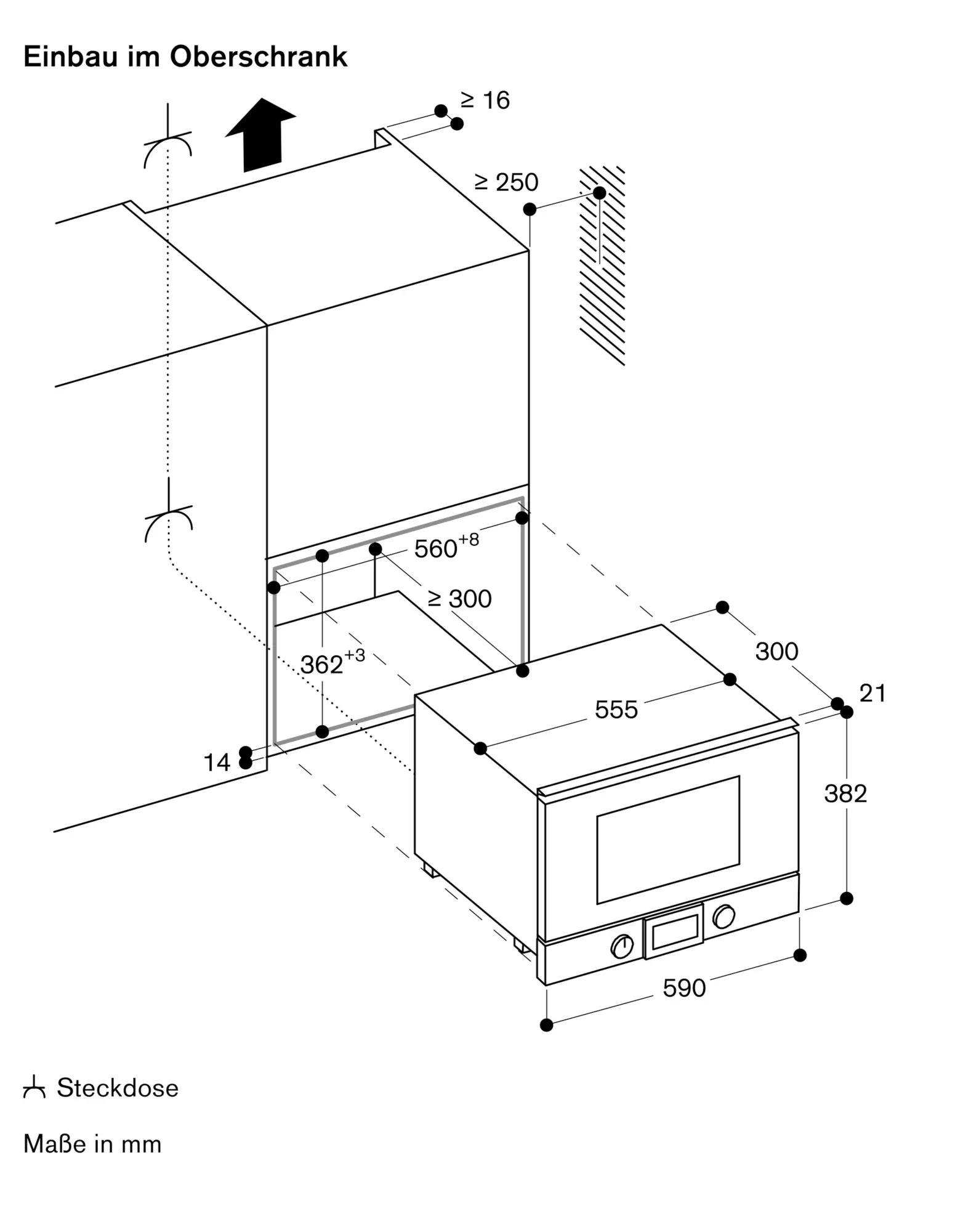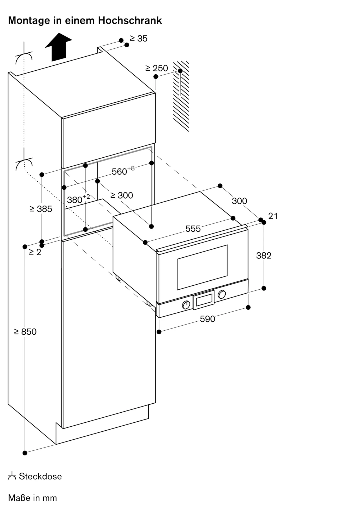 Mindesteinbauhöhe 85 cm (Oberkante Nischenboden).