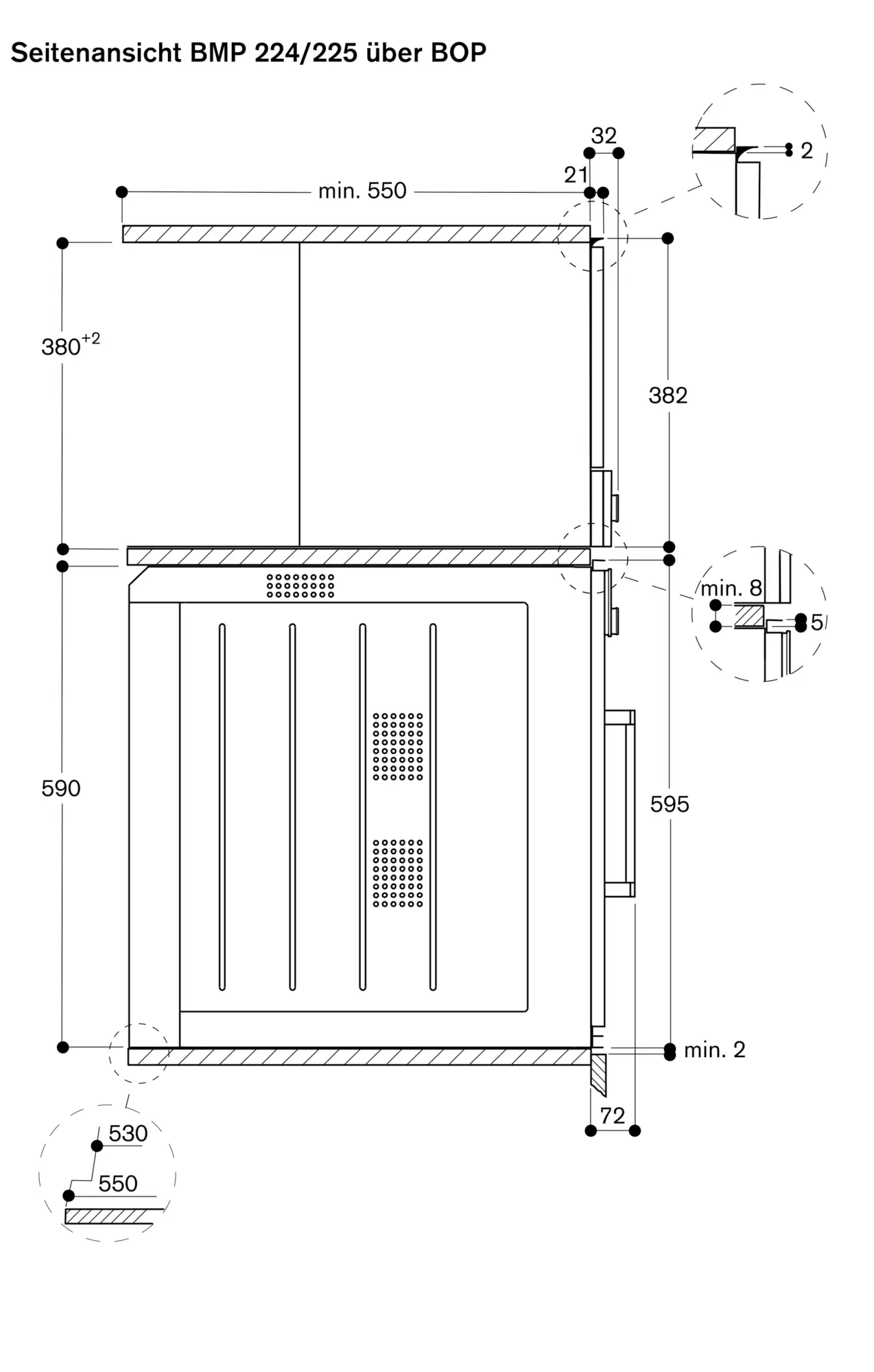 Seitliches Spaltmass zwischen Gerätetür und Möbelfront min. 5 mm.