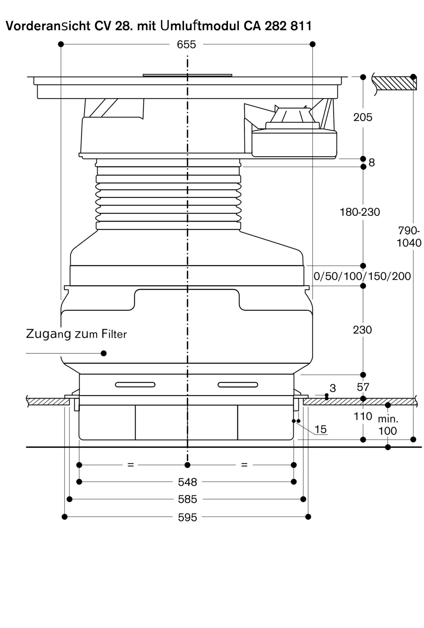 Für eine optimale Performance im Umluftbetrieb wird eine Ausströmfläche von min. 720 cm² empfohlen.