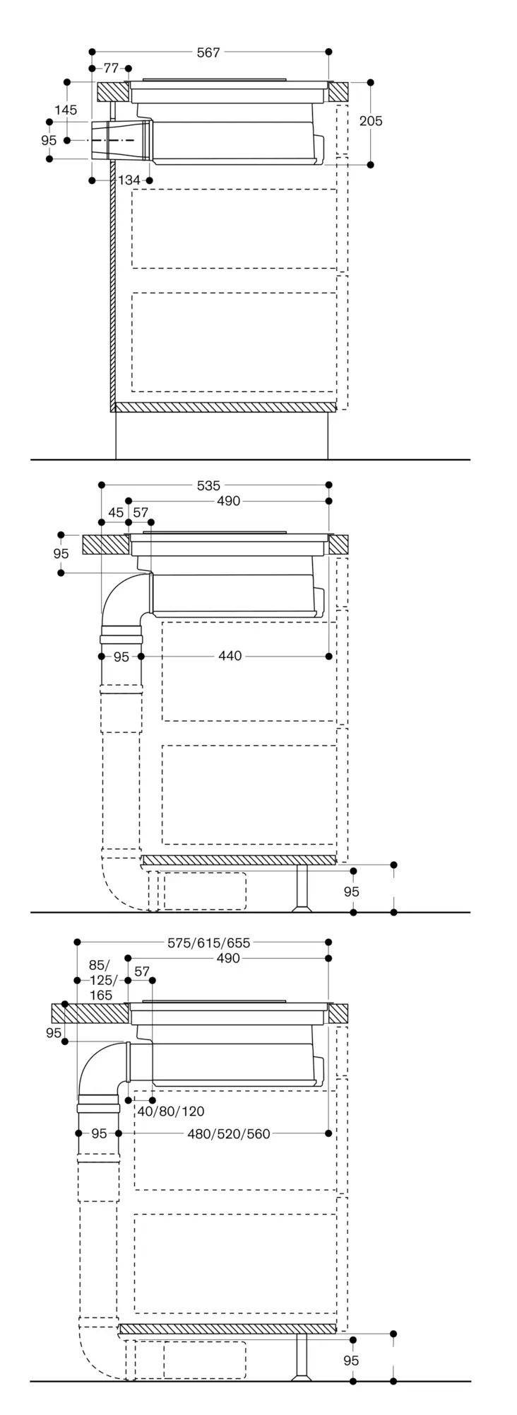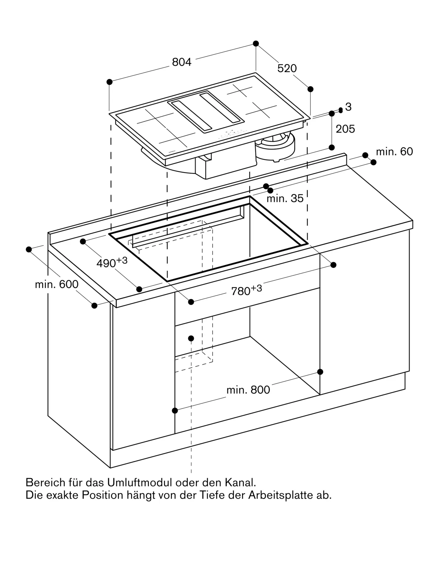 Die Tragfähigkeit und die Stabilität insbesondere bei dünnen Arbeitsplatten ist durch geeignete Unterkonstruktionen sicherzustellen. Gerätegewicht inkl. zusätzlicher Beladung berücksichtigen.