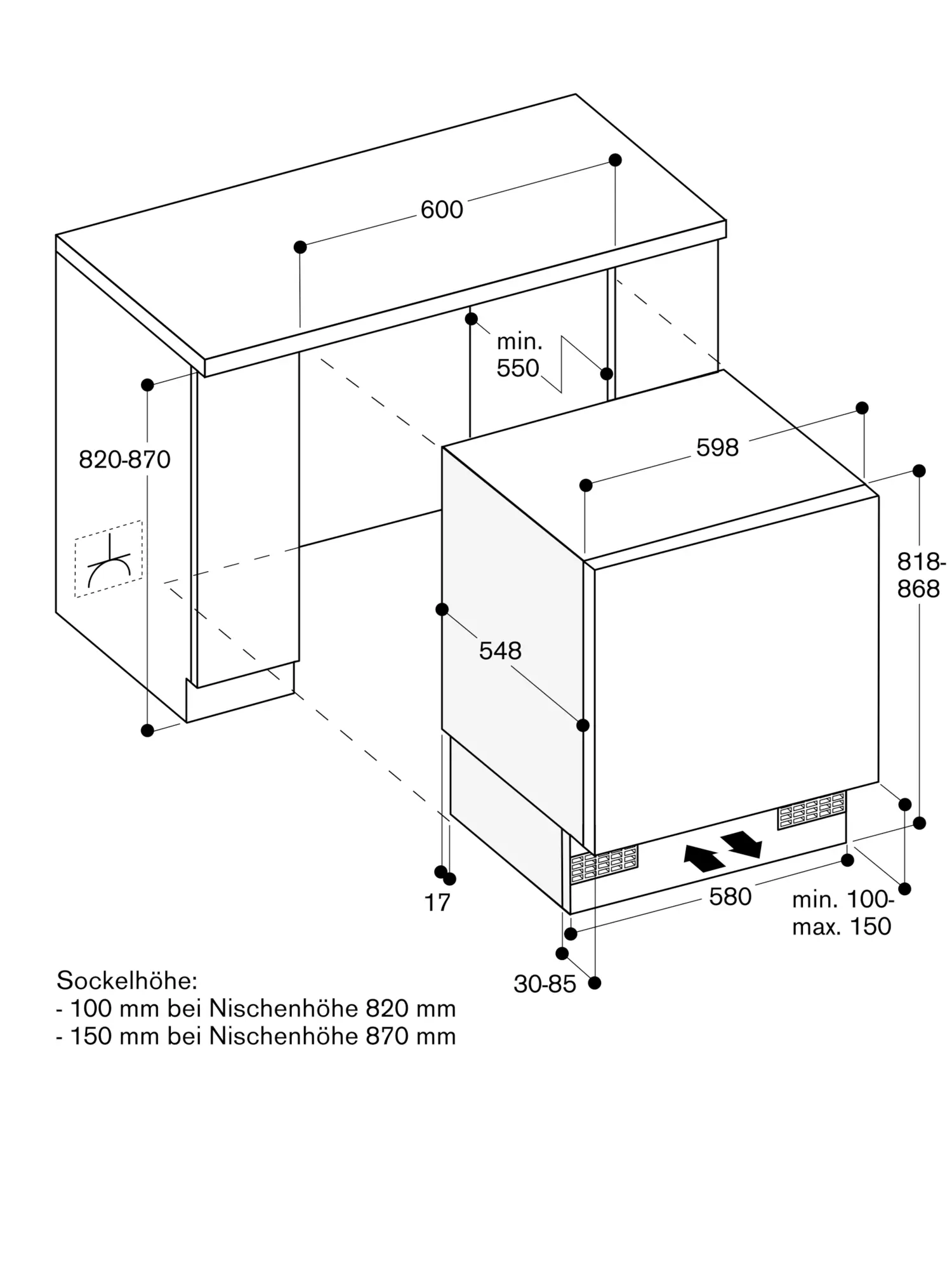 Sockelhöhe bei Nischenhöhe 820 mm: 100 - 170 mm.