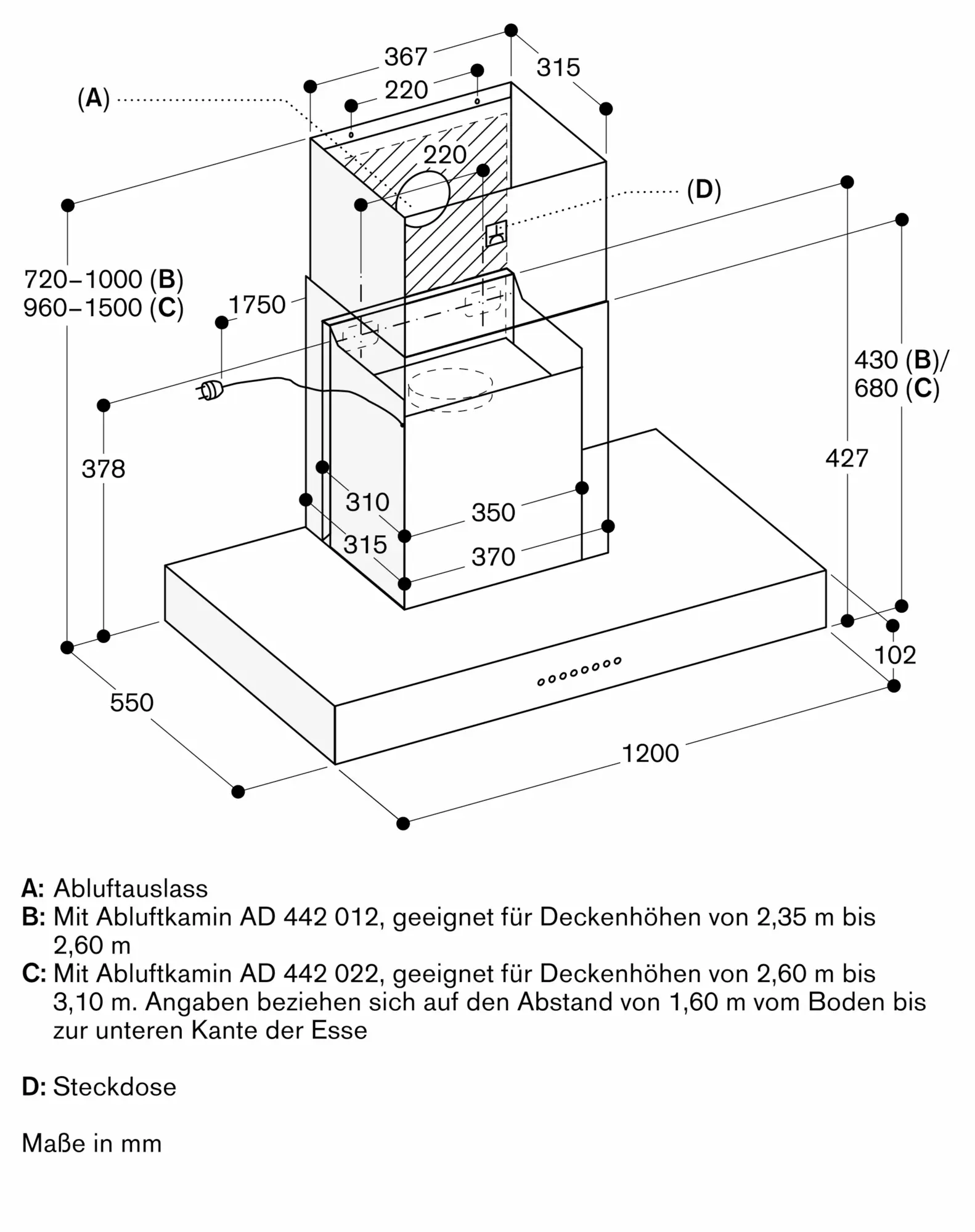 Werte beziehen sich auf die Konfiguration mit dem Gebläsebaustein AR 400 143.