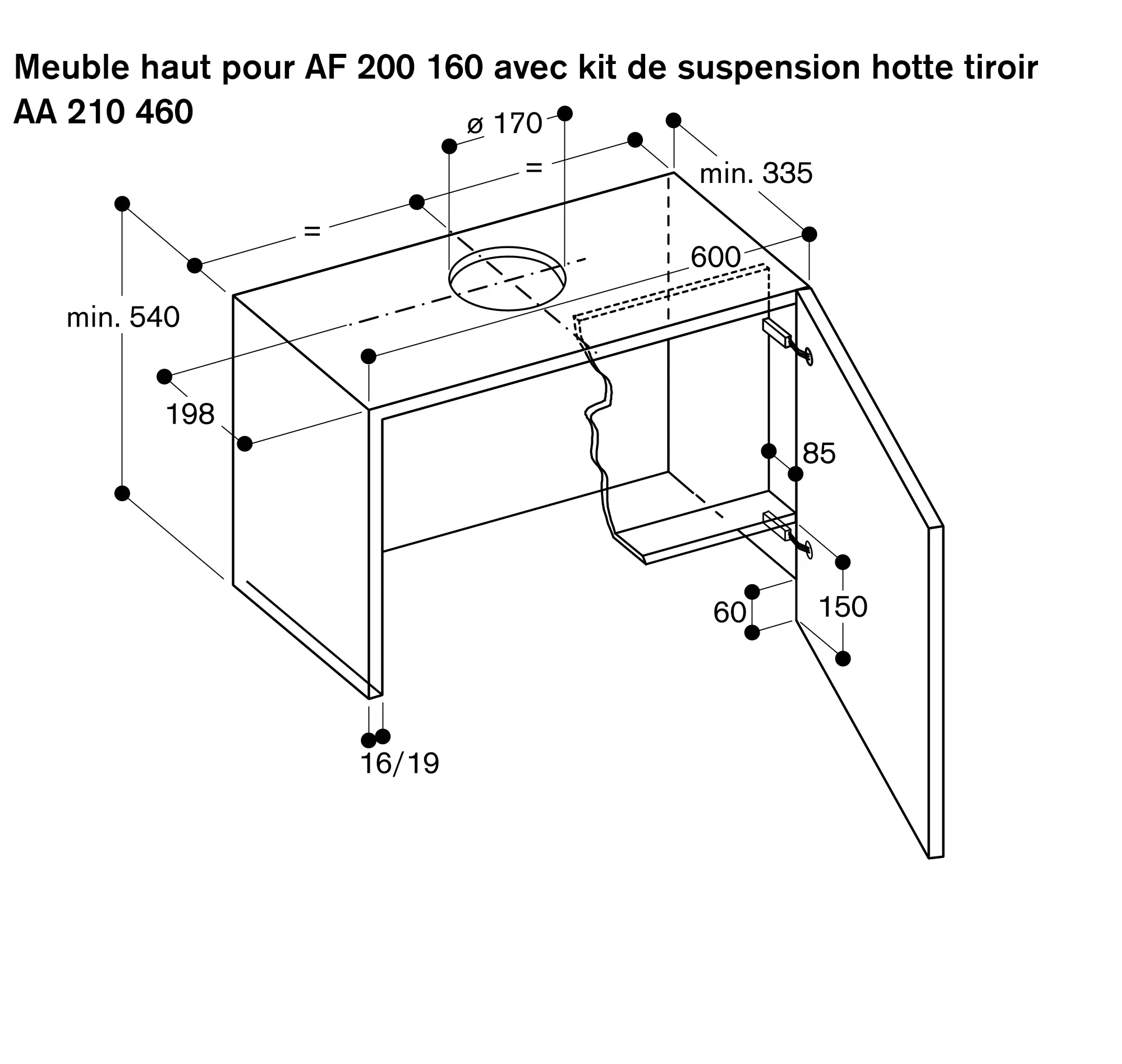 Montage directement sur le mur de la cuisine ou armoire supérieure renforcée.