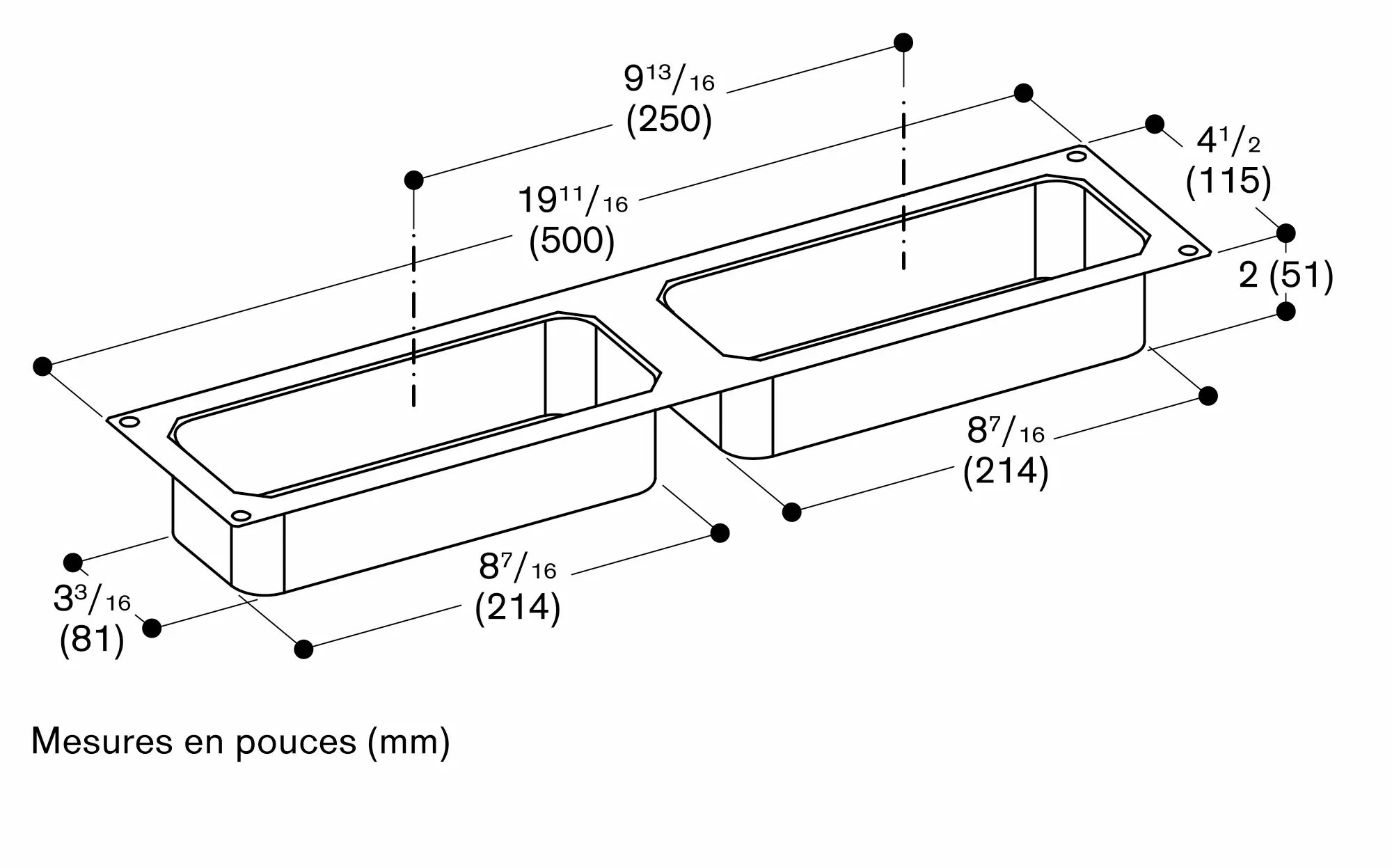 Raccord alimentation d'air: 2 x DN 150 conduit rectangulaire.