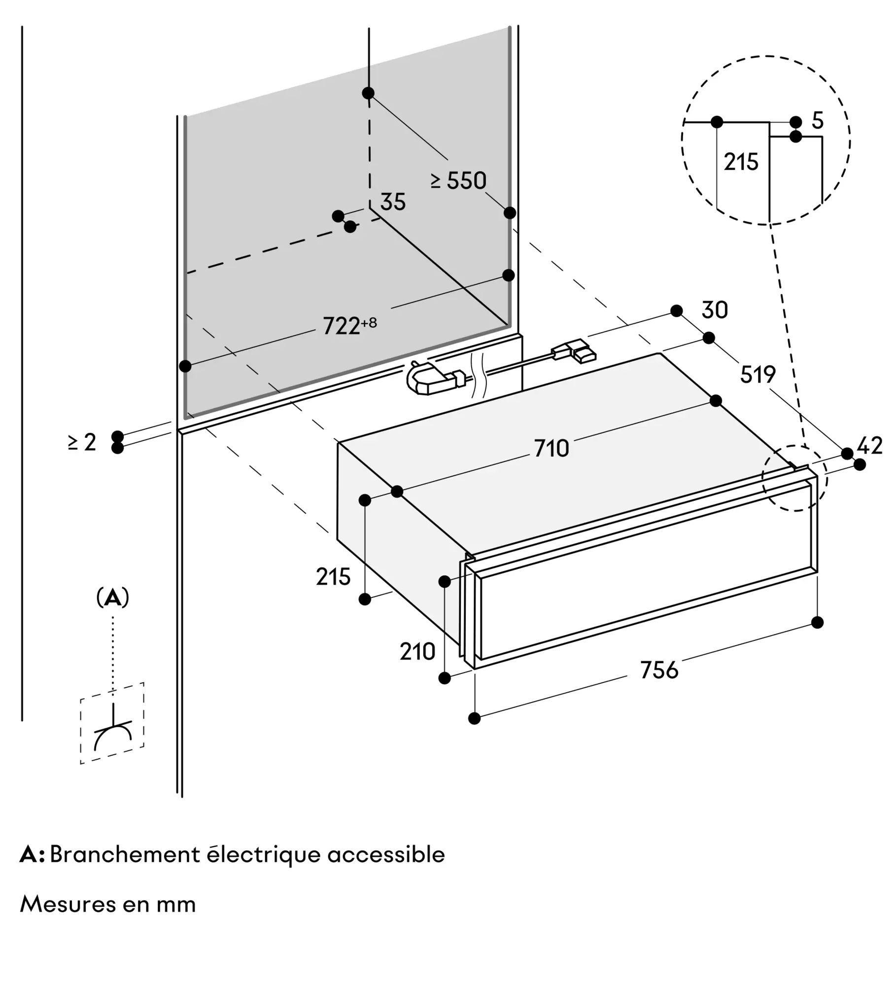 La prise de raccordement doit être accessible et située en dehors de la niche d'encstratement.