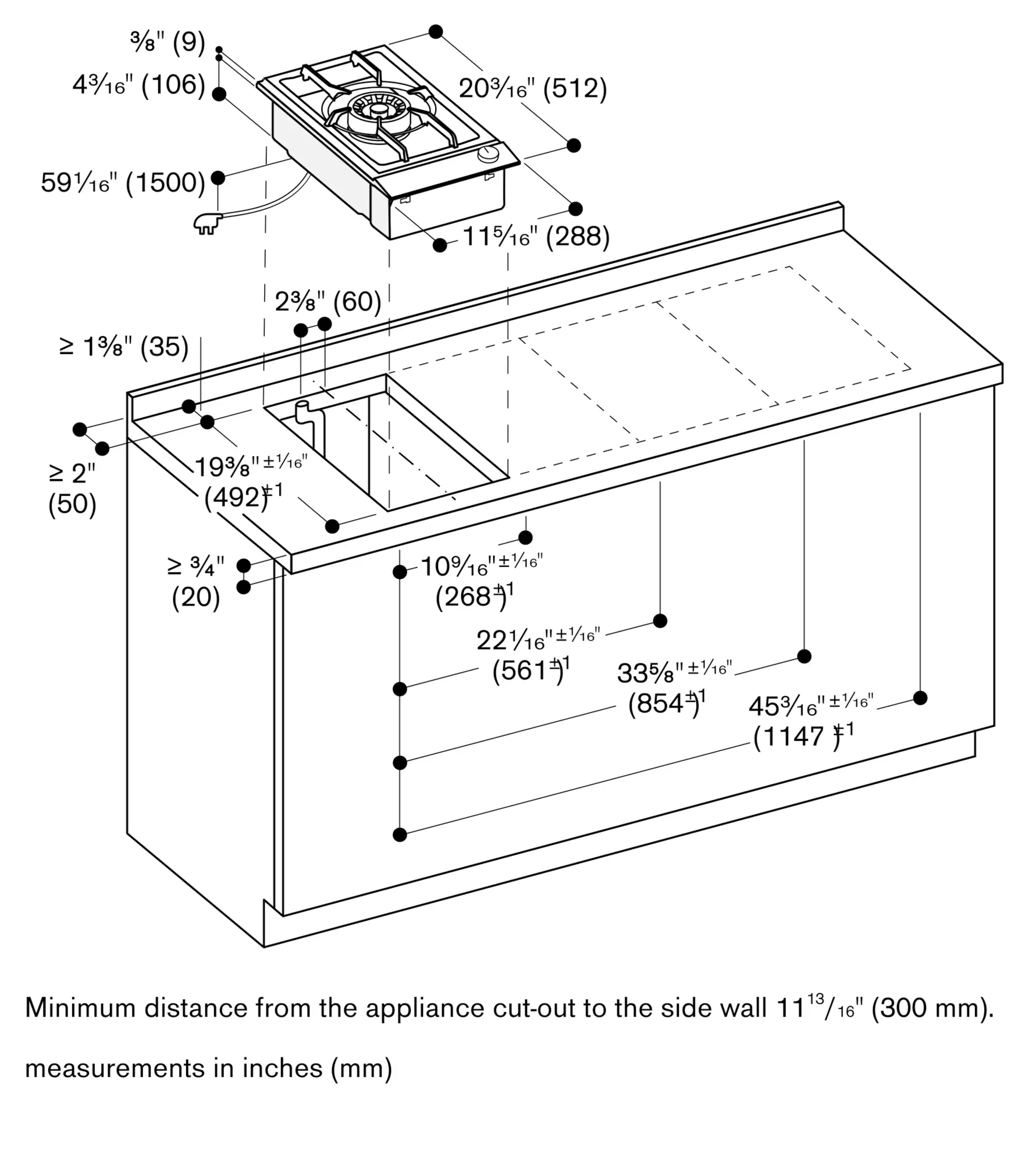 Above countertop minimum clearance of at least 11 13/16'' from adjacent heat-sensitive furniture or contact surfaces must be observed or thermal insulation must be installed.