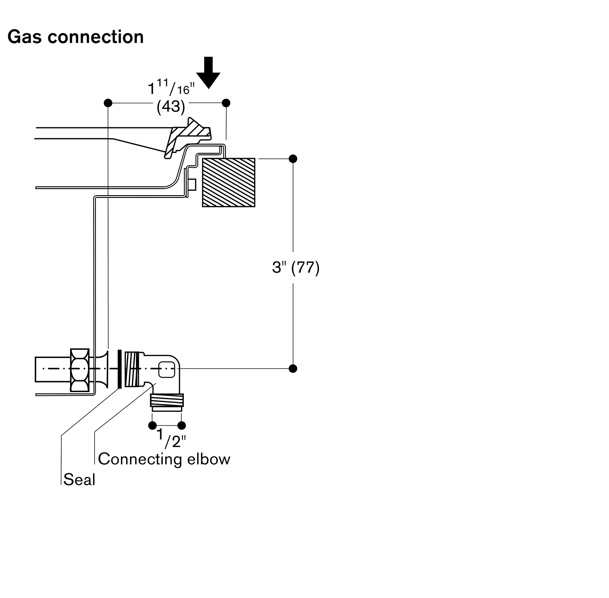 Minimum distance between gas cooktop(s) with more than 37,533 BTU(11kW) and ventilation hood must be 30'' (76cm).