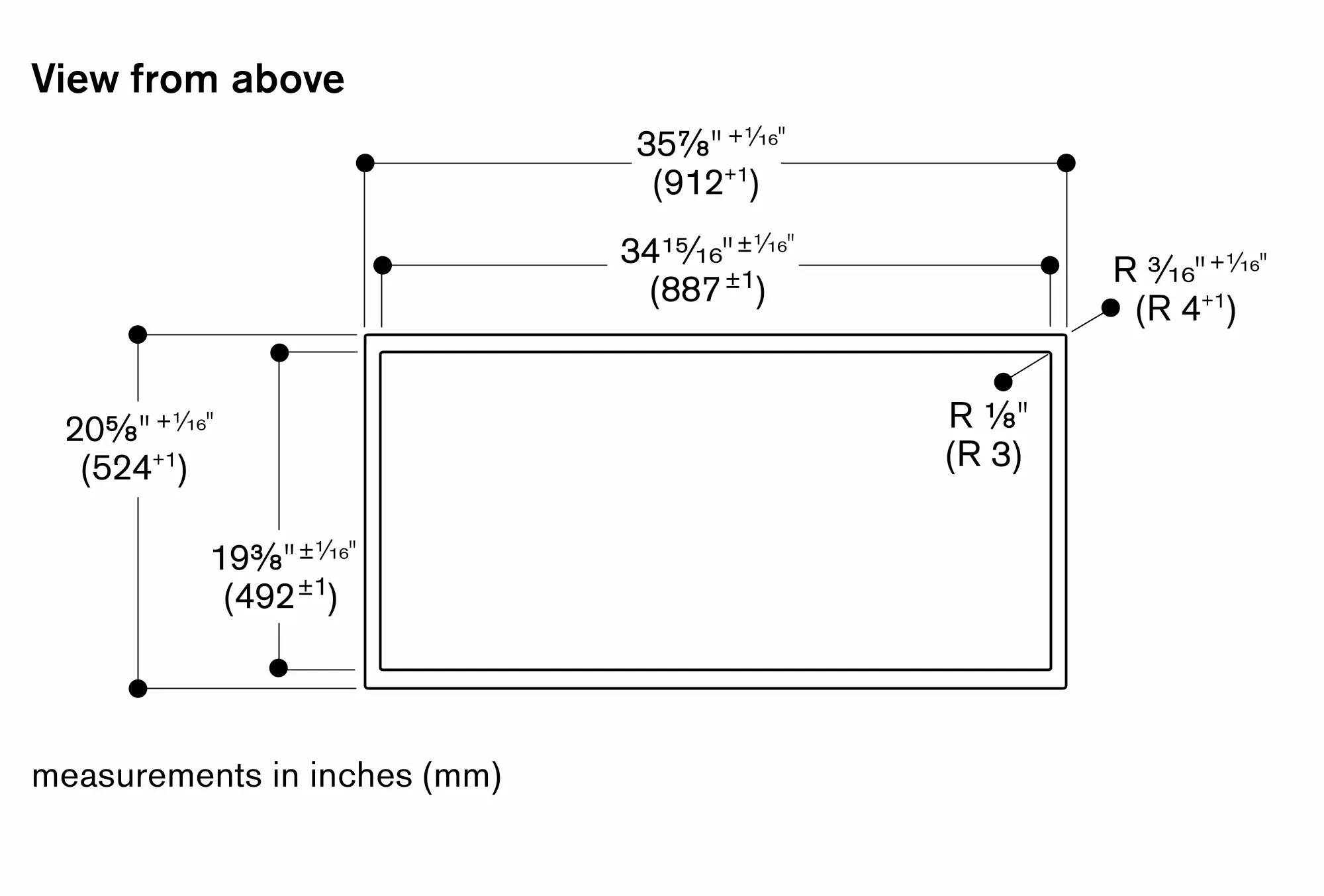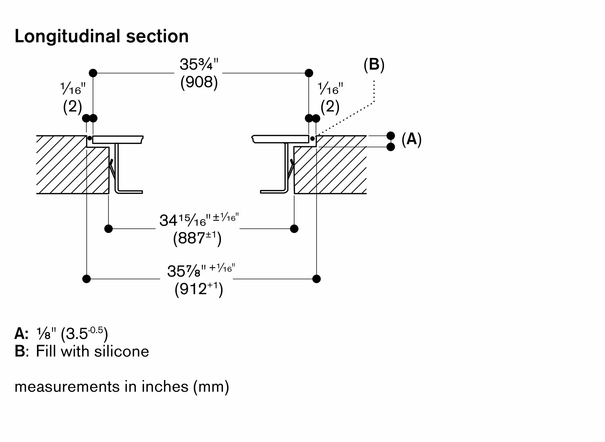 The bearing capacity and stability, in the case of thin worktops in particular, must be supported using suitable substructures. Take into account the appliance weight and additional loads.
