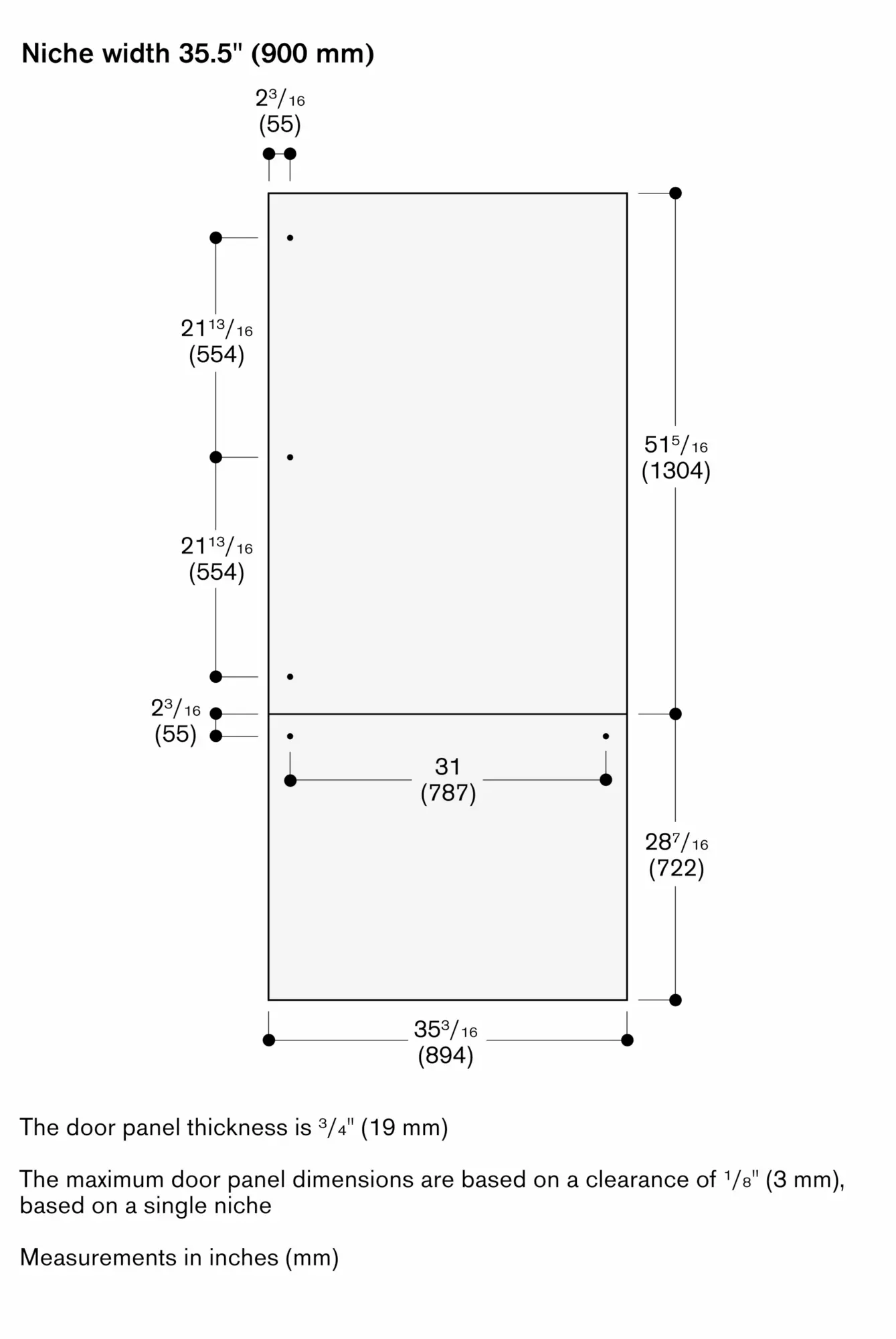 Flexible positioning of door racks through hidden rail system.