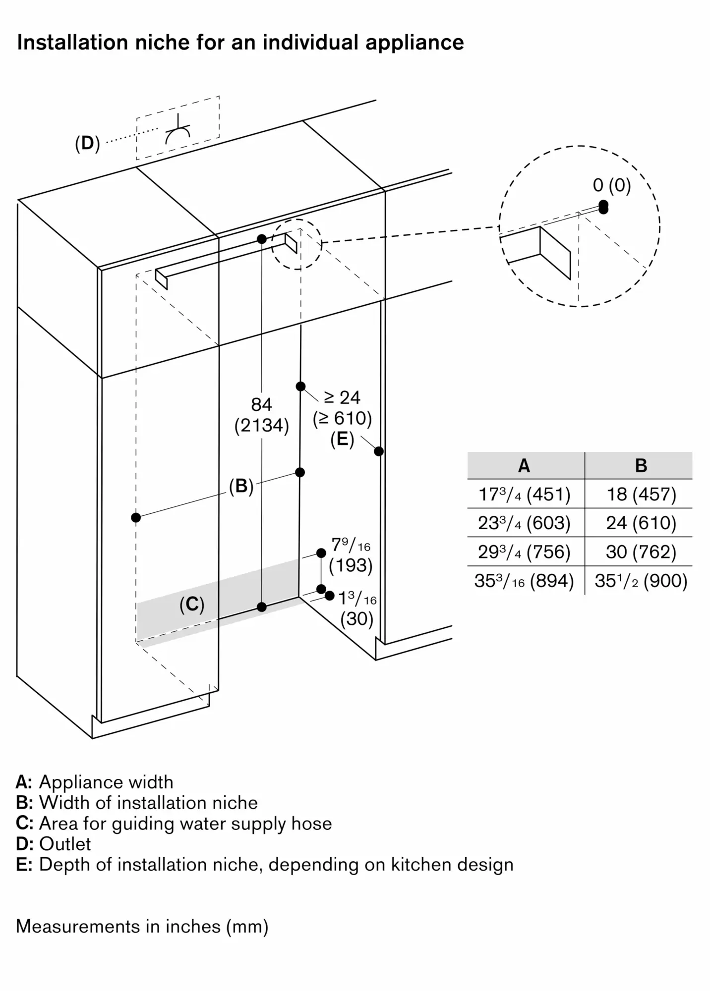 Shut-off valve for water connection must be planned next to the appliance and always be accessible.
