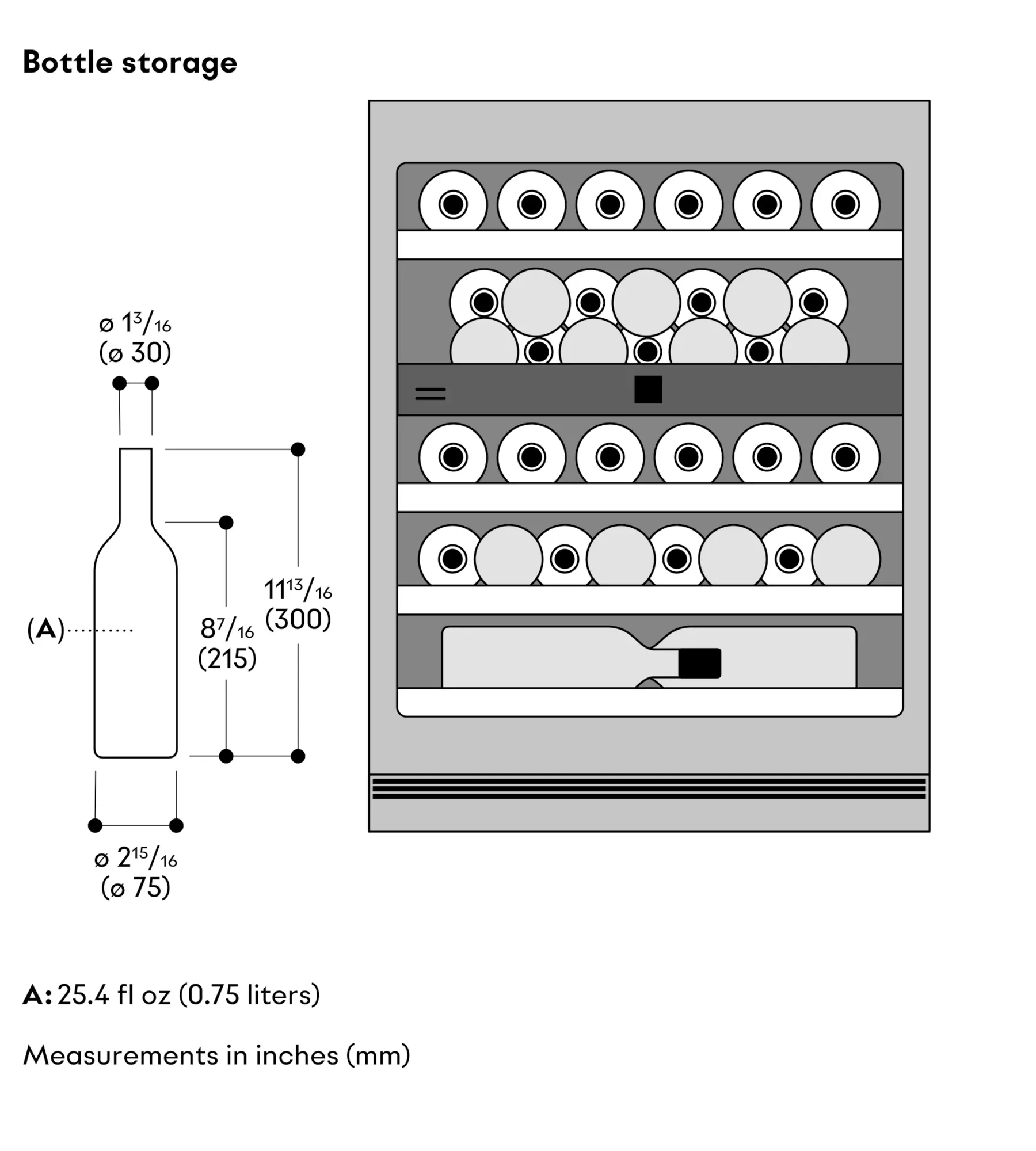 Capacity 38 bottles (based on 0.75 l standard bottles).