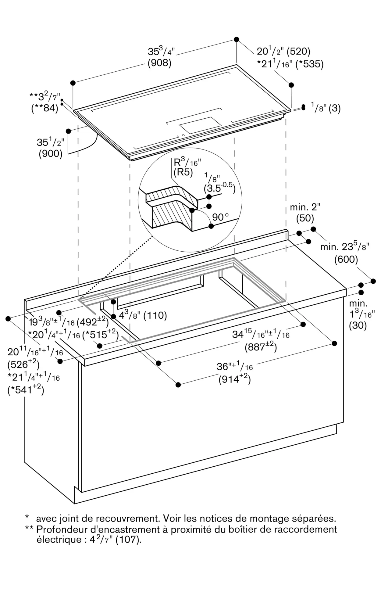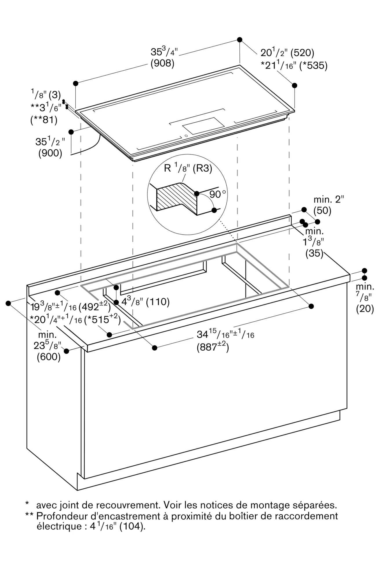 Informations complémentaires pour une installation à fleur de plan de travail :
