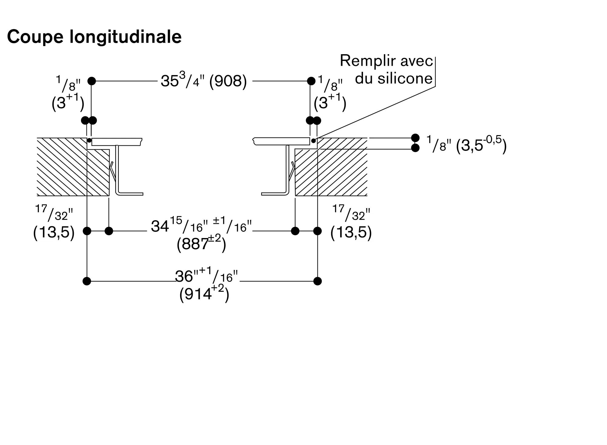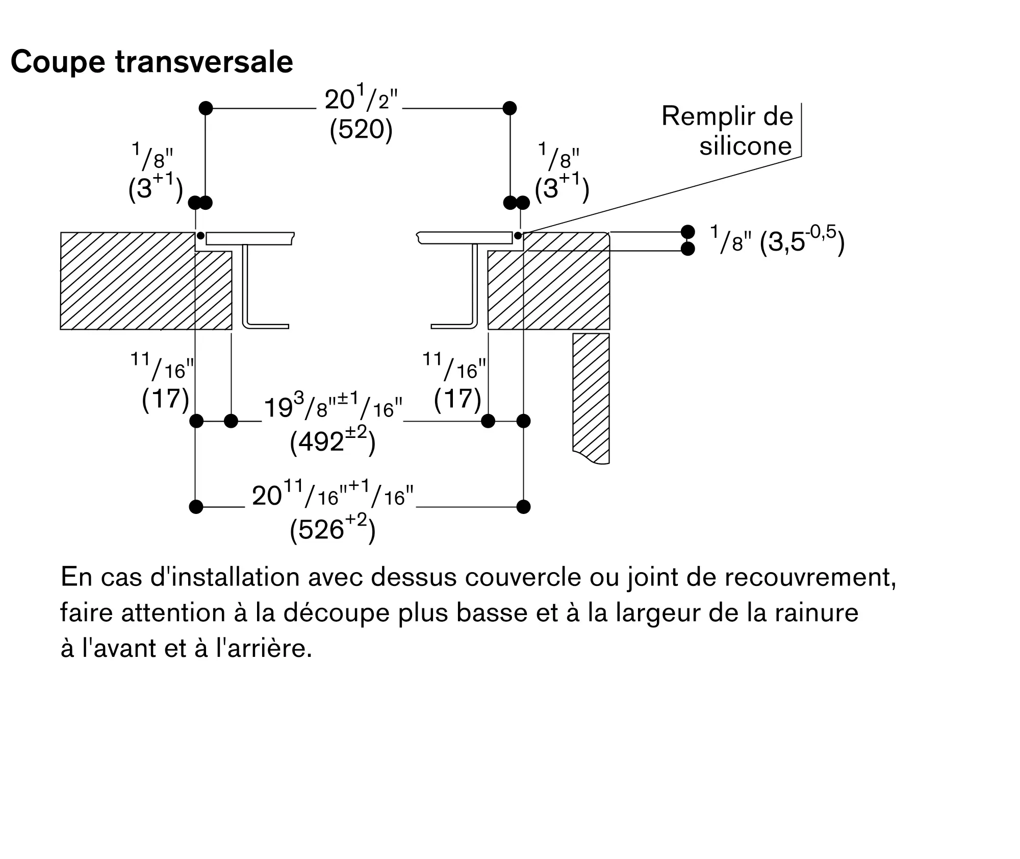 La rainure doit être continue et de niveau, pour assurer une installation uniforme des appareils sur le joint. Ne pas utiliser de joints de regarnissage par le dessous.