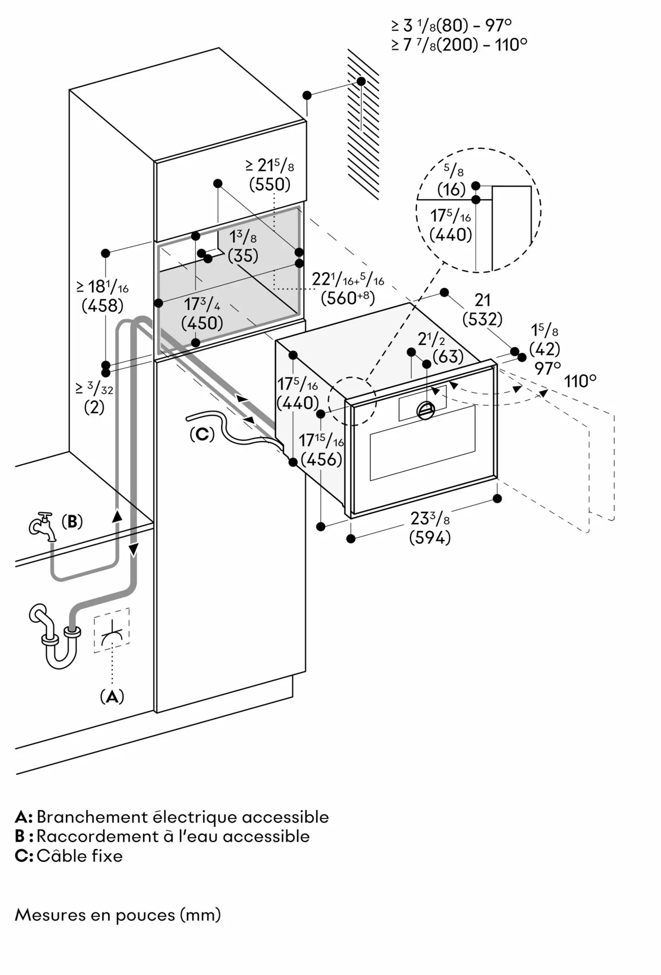 Le robinet d'arrivée d'eau doit toujours être accessible, il ne peut pas être placé derrière l'appareil.