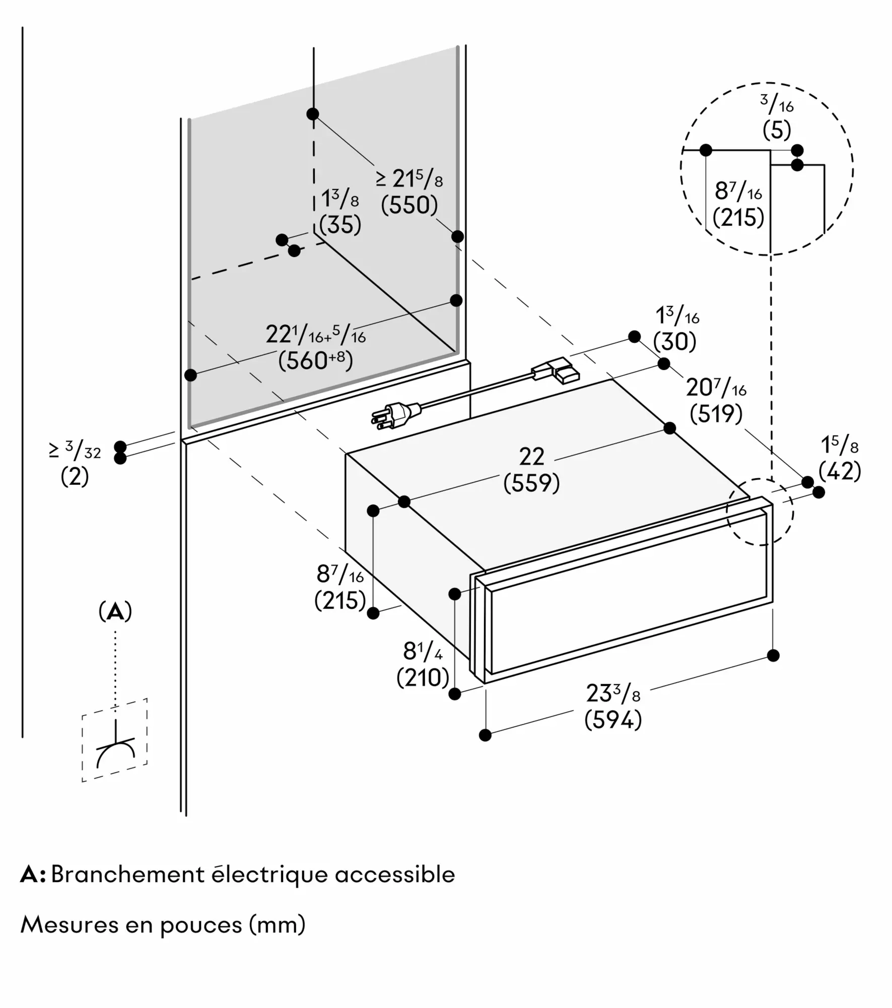 Raccordement électrique possible à l'arrière de l'appareil.