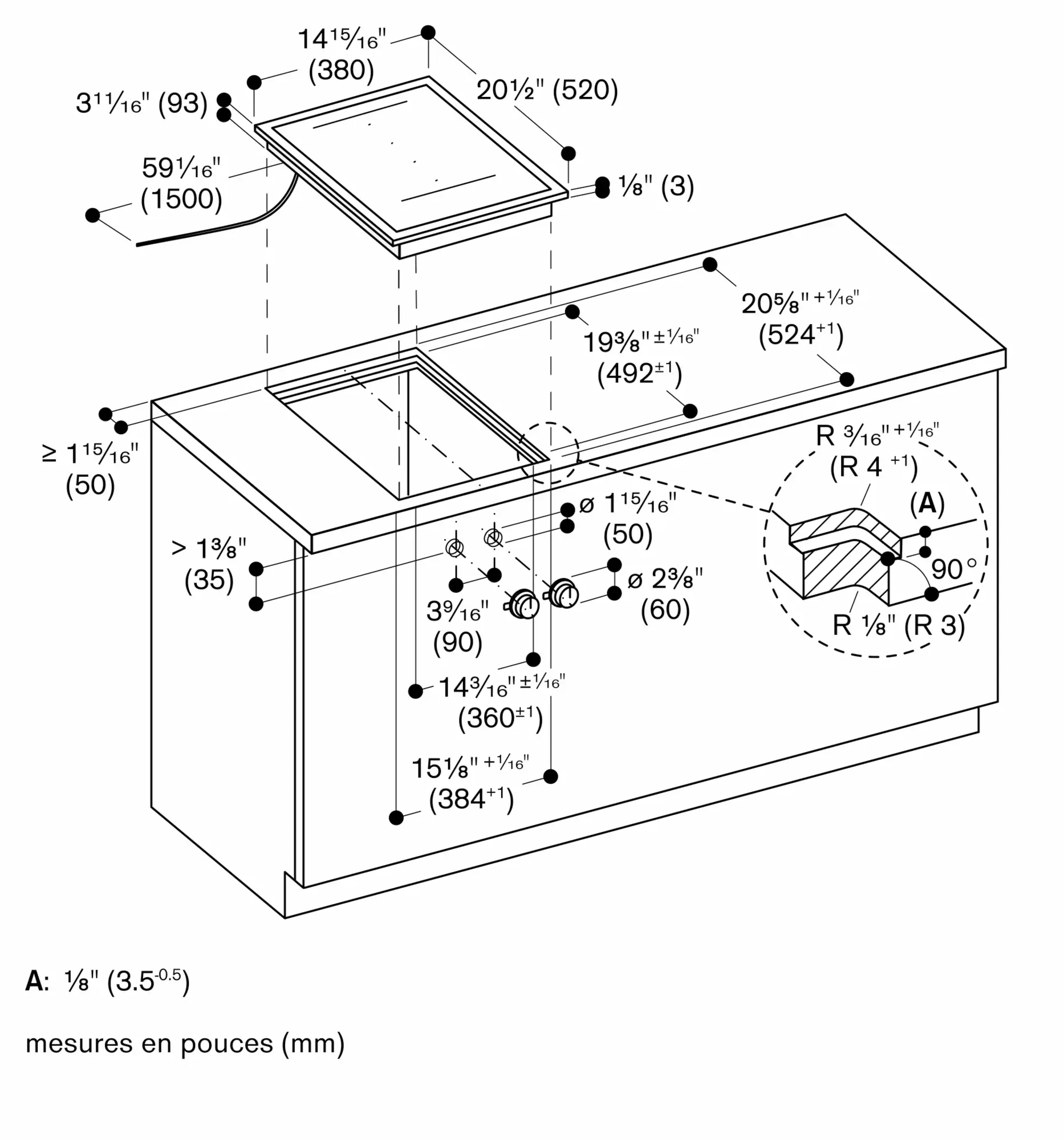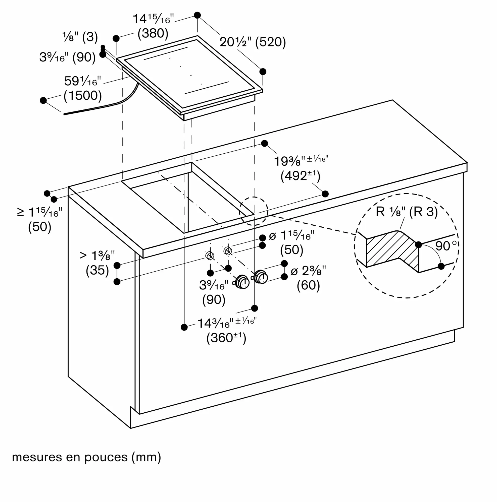 Informations complémentaires pour une installation à fleur de plan de travail :