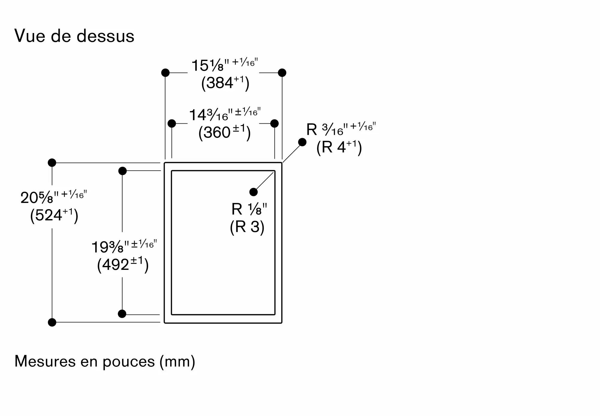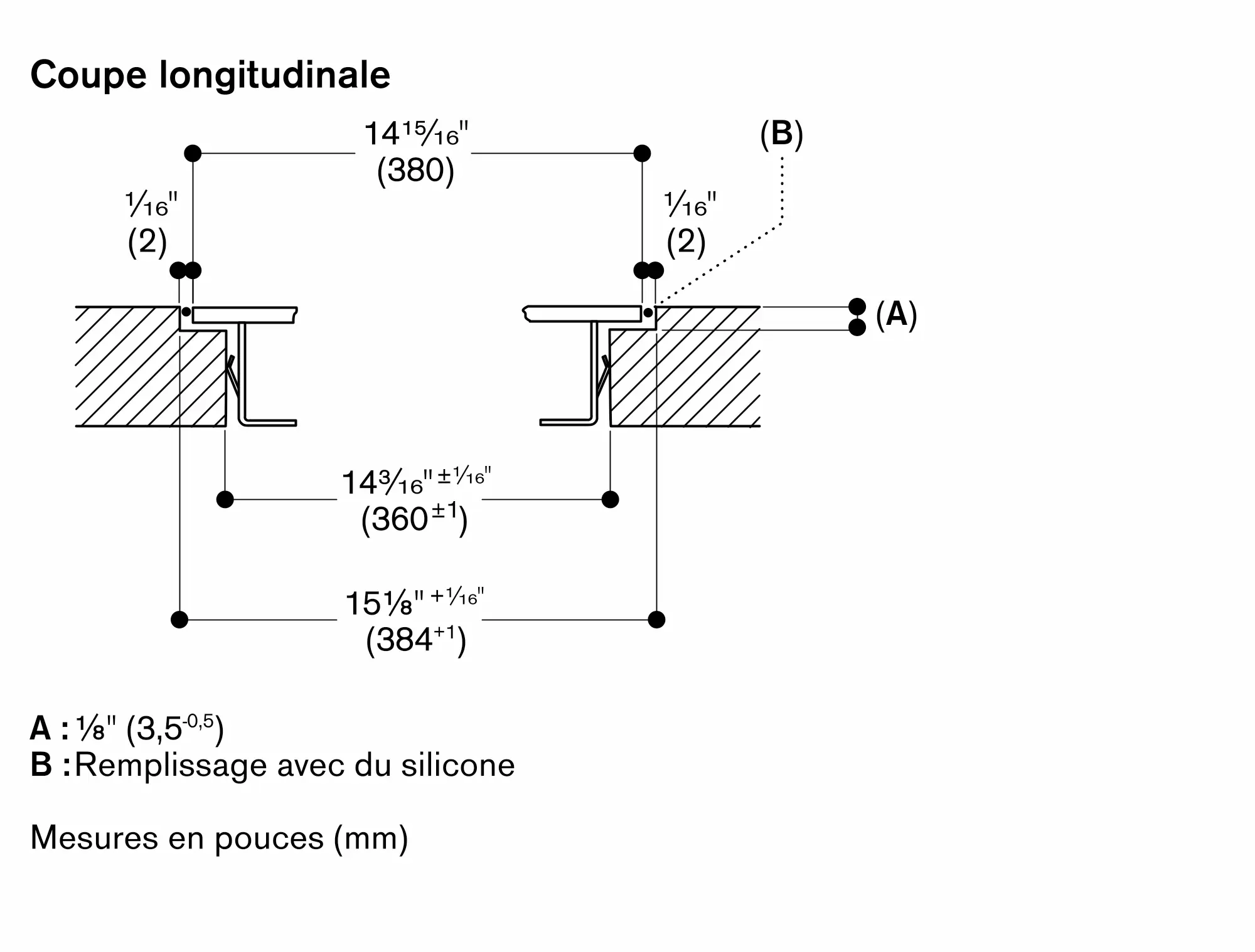 La largeur du raccord peut varier en raison des écarts de dimensions des combinaisons et de la niche de la surface de travail.