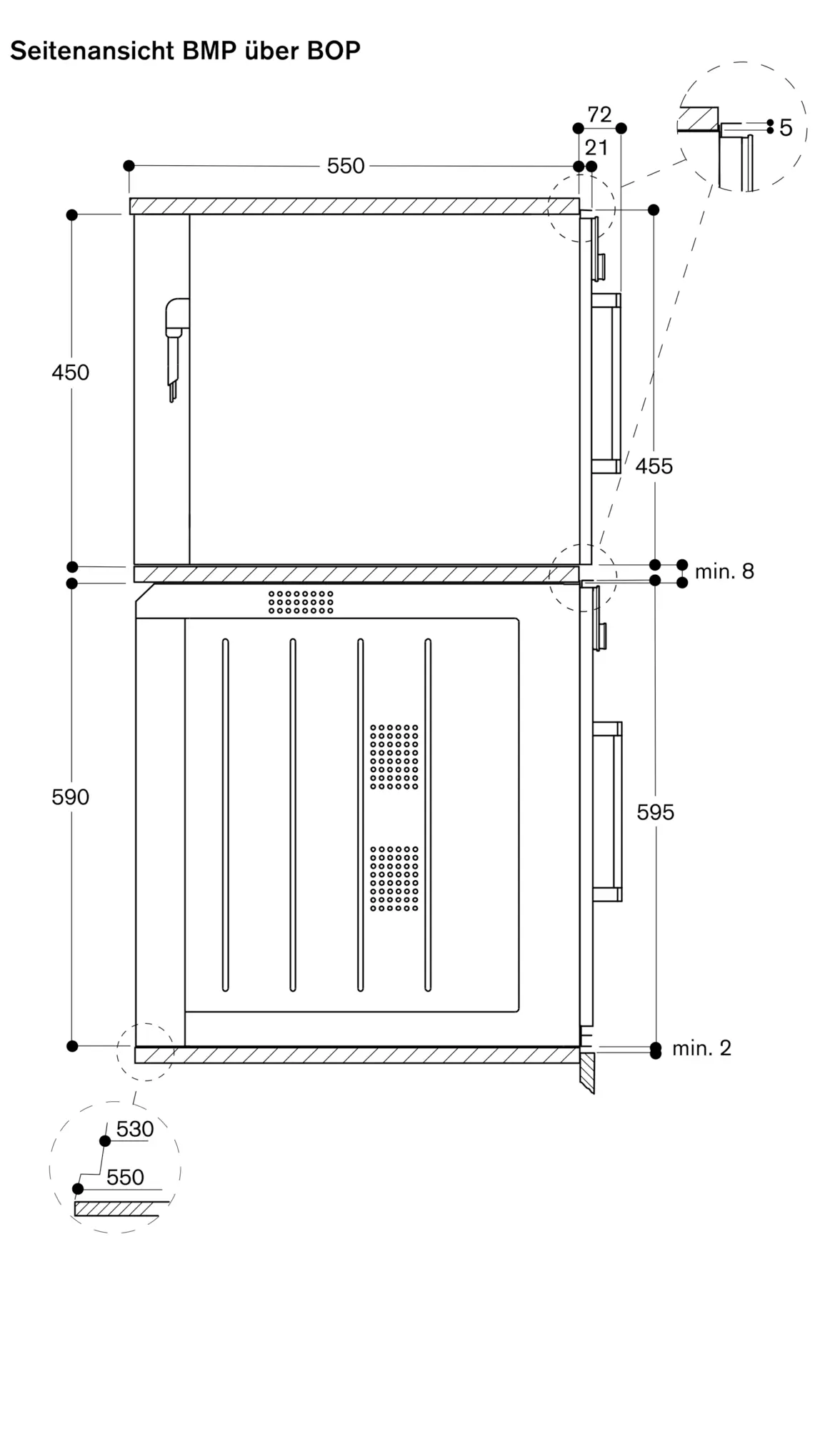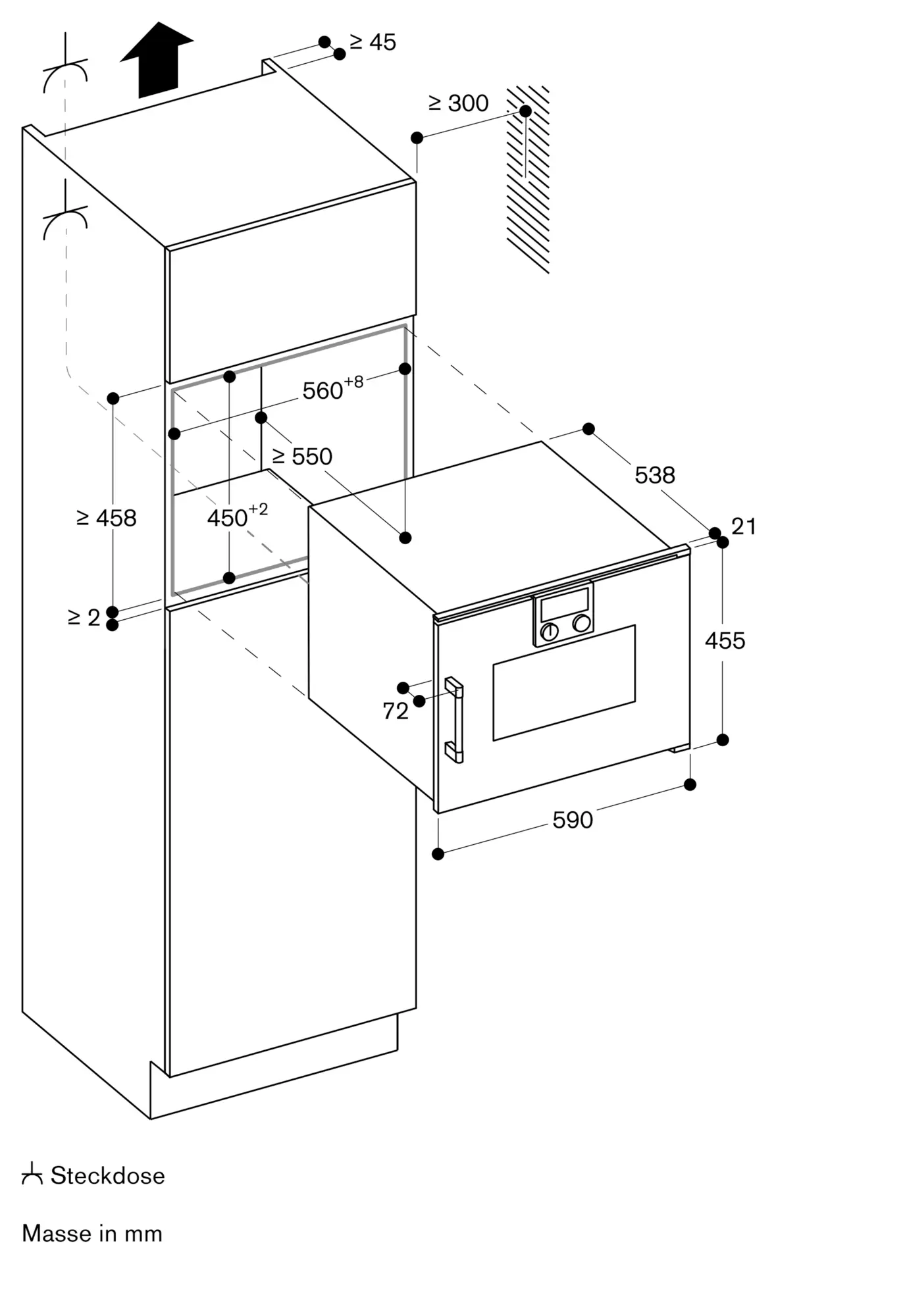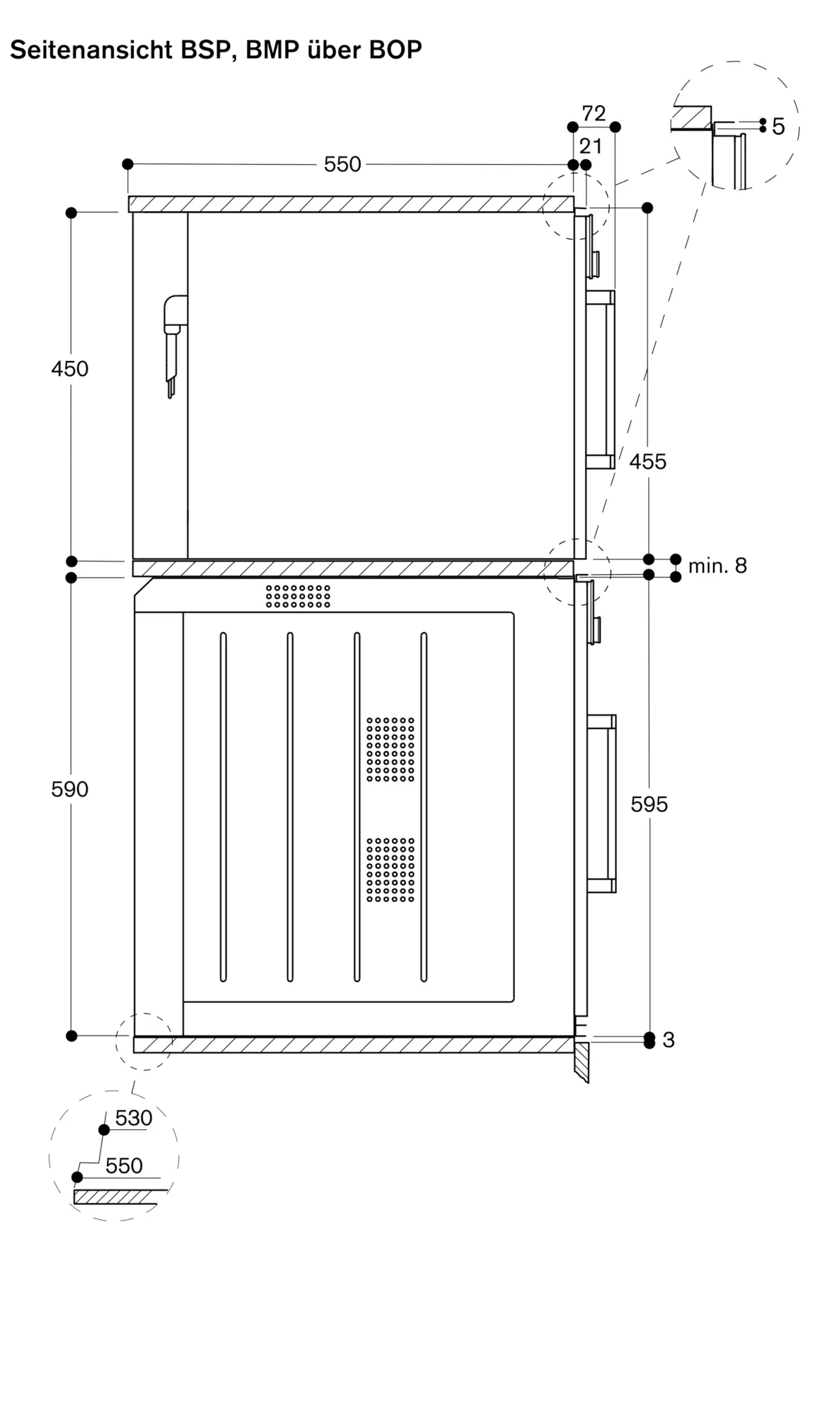 Seitliches Spaltmass zwischen Gerätetür und Möbelfront min. 5 mm.