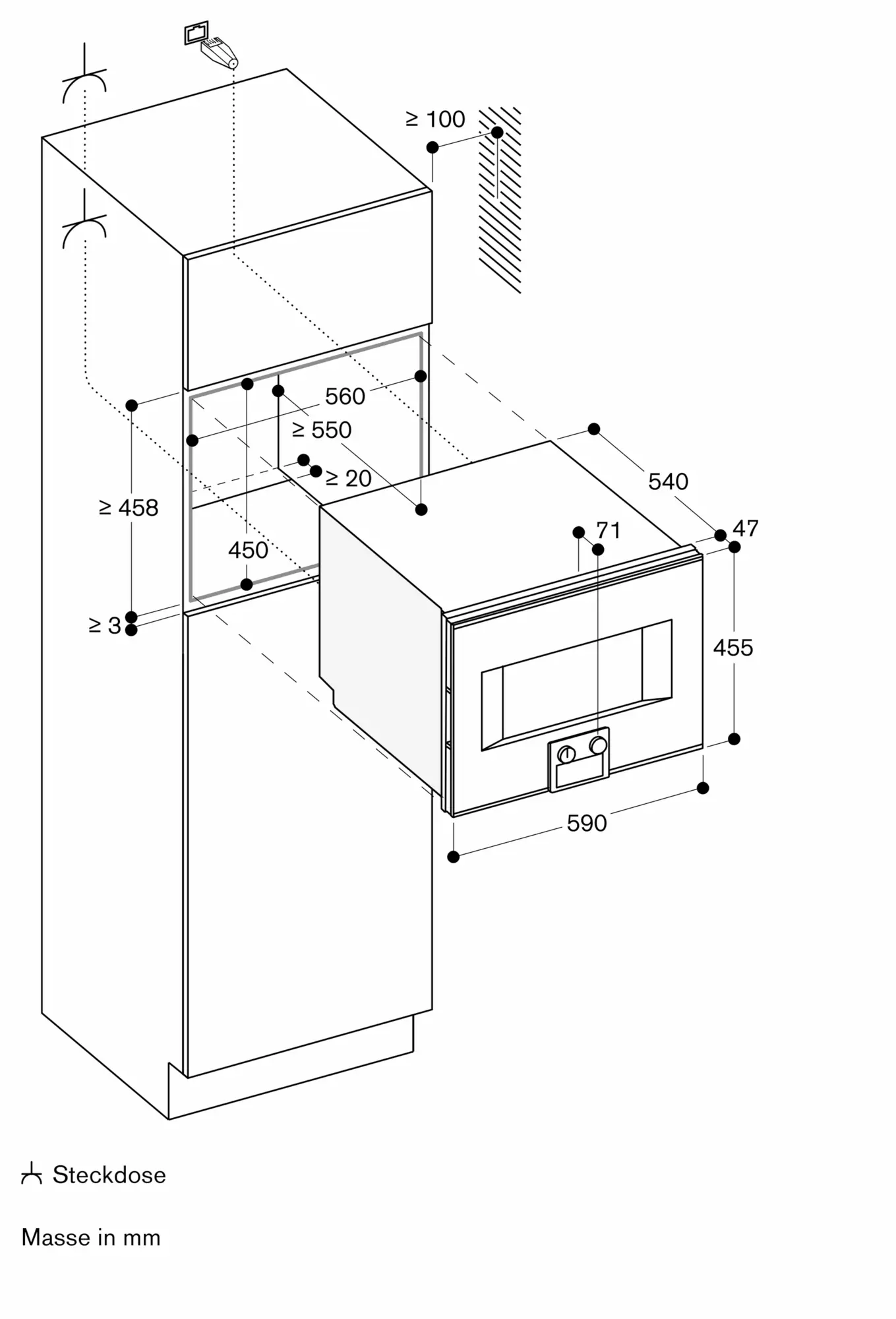 Anschlussdose ausserhalb der Einbaunische planen.