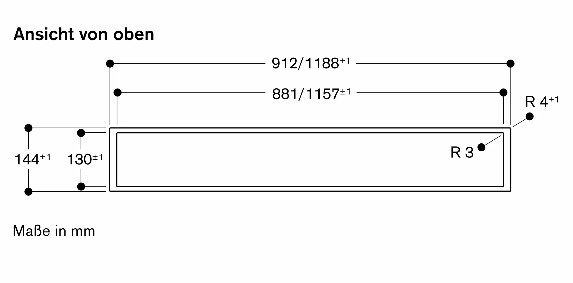 Die Tragfähigkeit und die Stabilität insbesondere bei dünnen Arbeitsplatten ist durch geeignete Unterkonstruktionen sicherzustellen. Gerätegewicht inkl. zusätzlicher Beladung berücksichtigen.