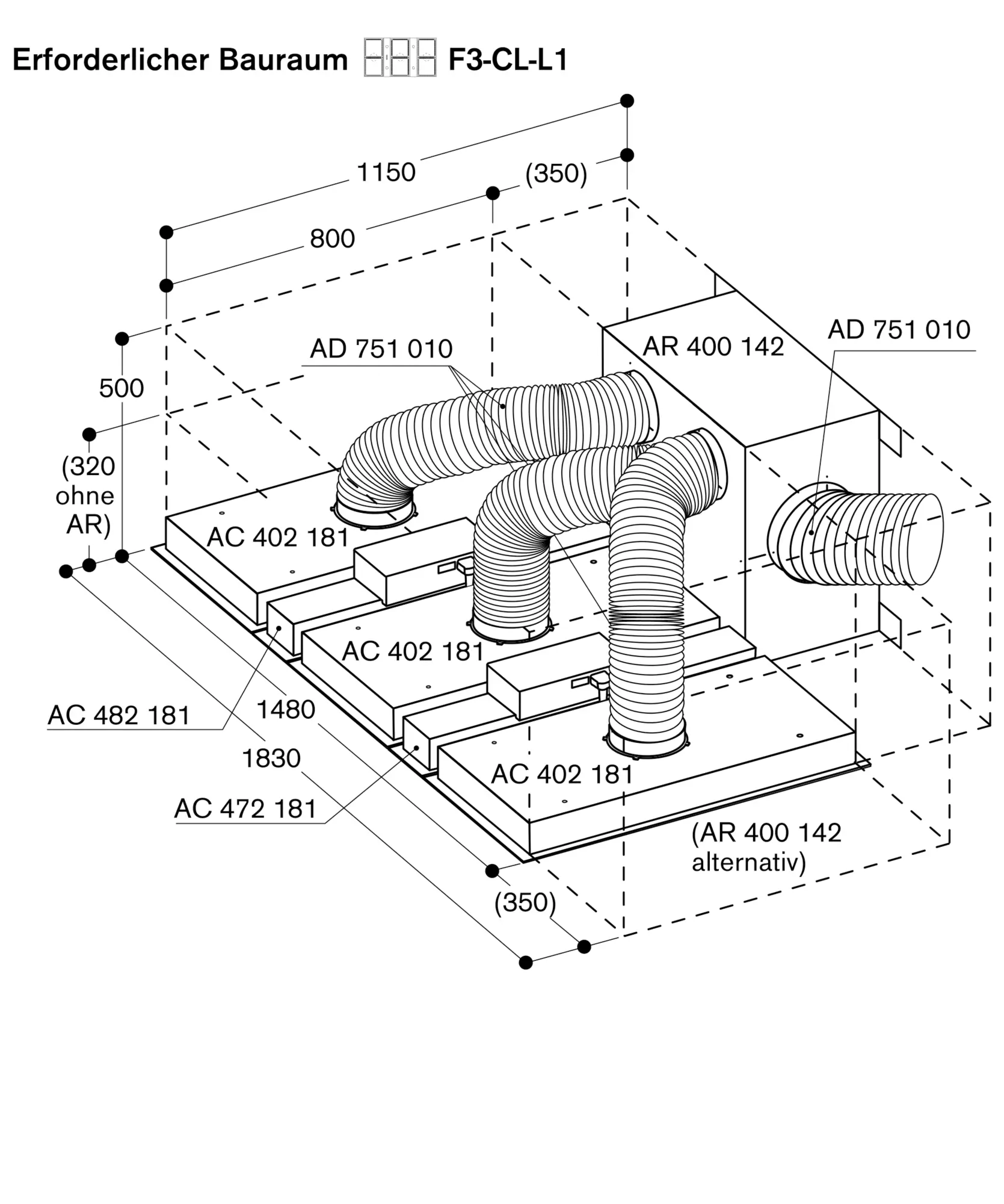 Individuelle Integration von Lichtelementen in der Deckenlüftungs-Konfiguration