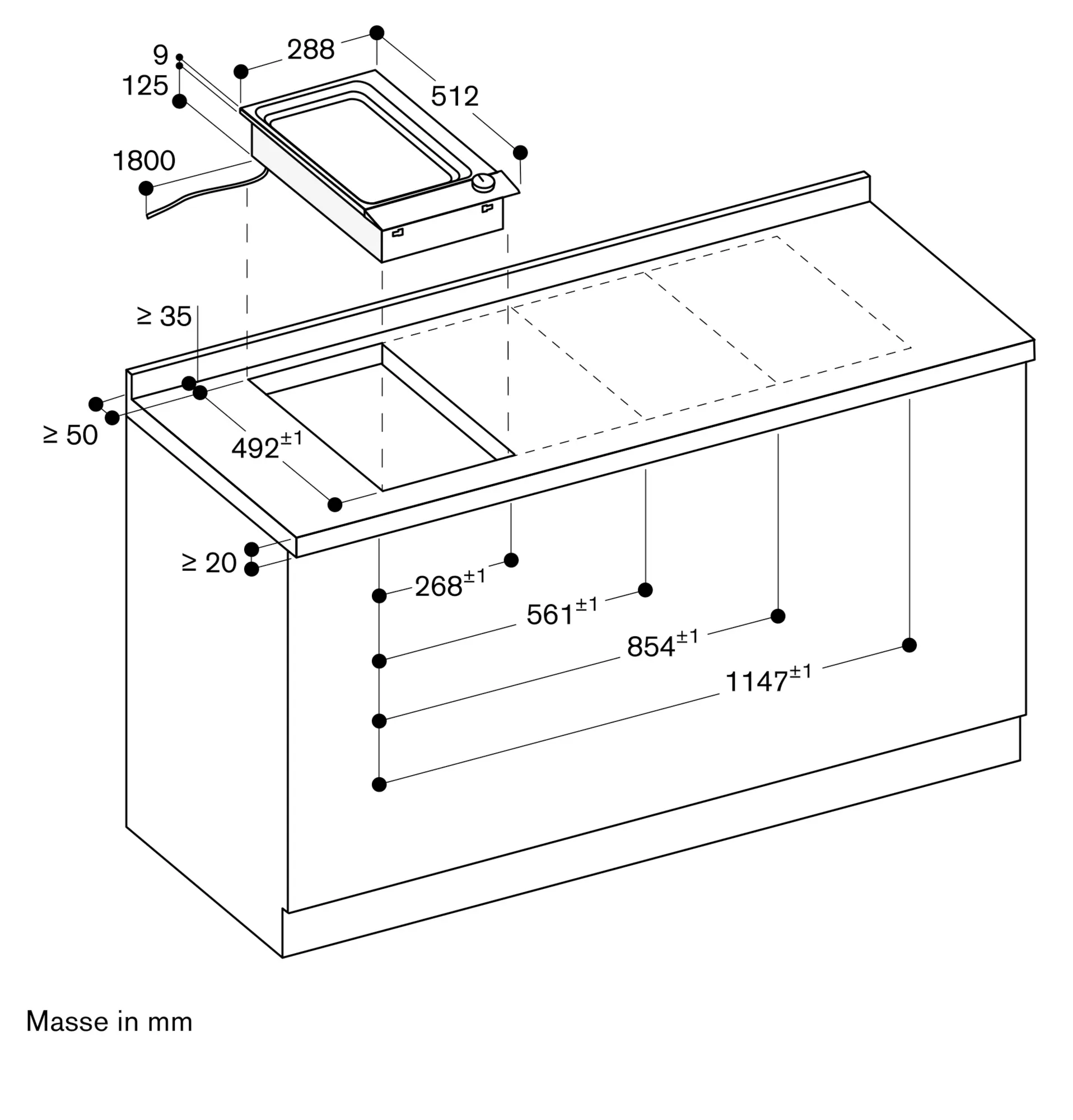 Gerät ist von oben in die Arbeitsplatte einschnappbar.