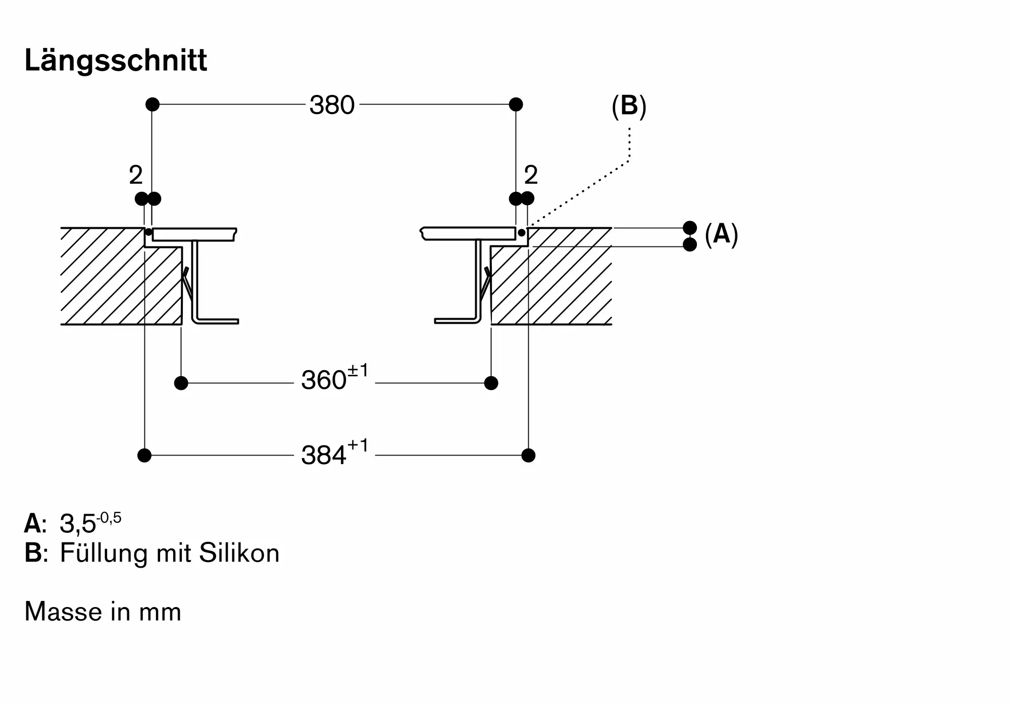 Der Einbau eignet sich in Arbeitsplatten aus Stein, synthetischem Material oder Massivholz. Hitzebeständigkeit und wasserdichte Versiegelung der Schnittkanten sind zu berücksichtigen. Bei anderen Materialien stimmen Sie sich bezüglich der Verwendung mit dem Arbeitsplatten-Hersteller ab.