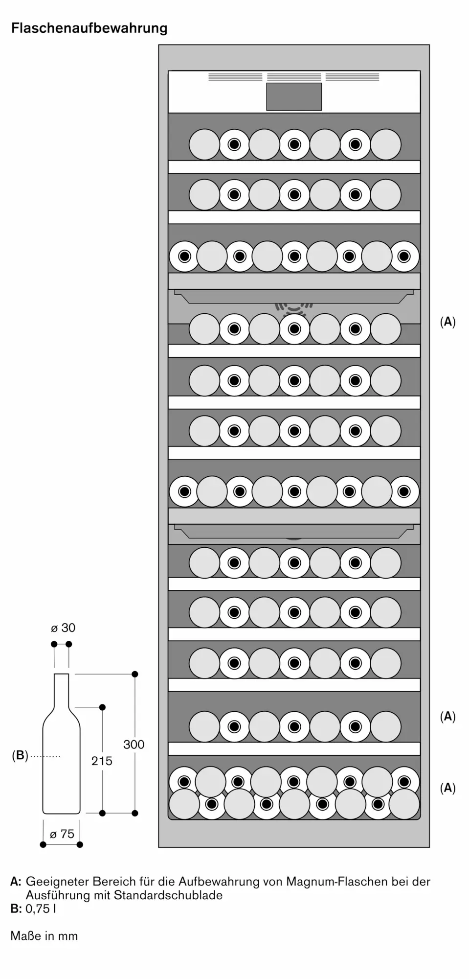 - 3 zur Lagerung von Magnum-Flaschen geeignet.