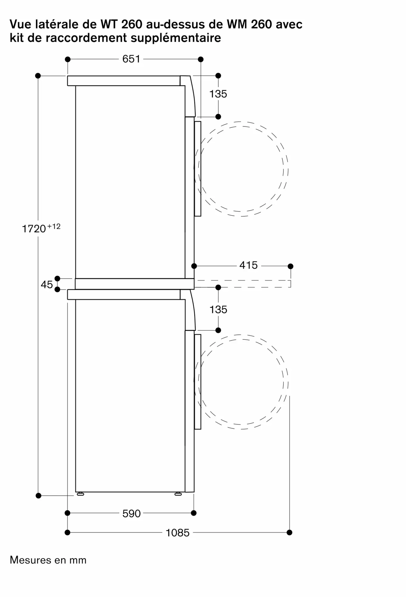Empilable au-dessus de la machine à laver WM 260 164 en combinaison avec un accessoire spécial. Avec tablette coulissante 17001528, sans tablette coulissante 17001527.
