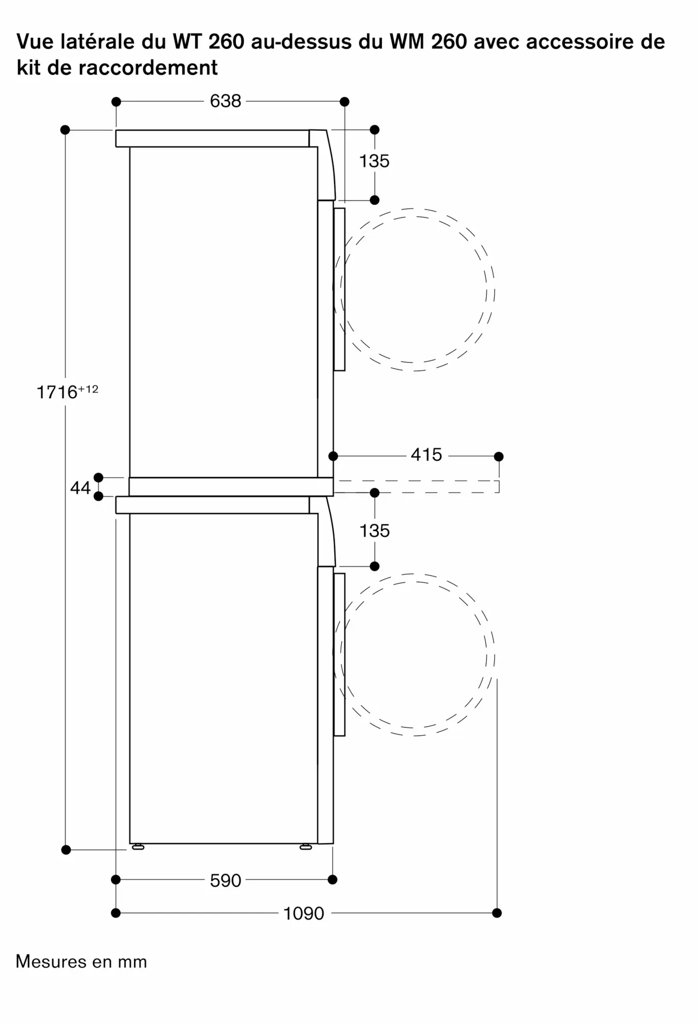 Possibilité d'installation en colonne au-dessus du lave-linge WM 260 165 et WM 260 166 avec l'accessoire spécial correspondant, l'étagère plateau coulissant WA 027 500.