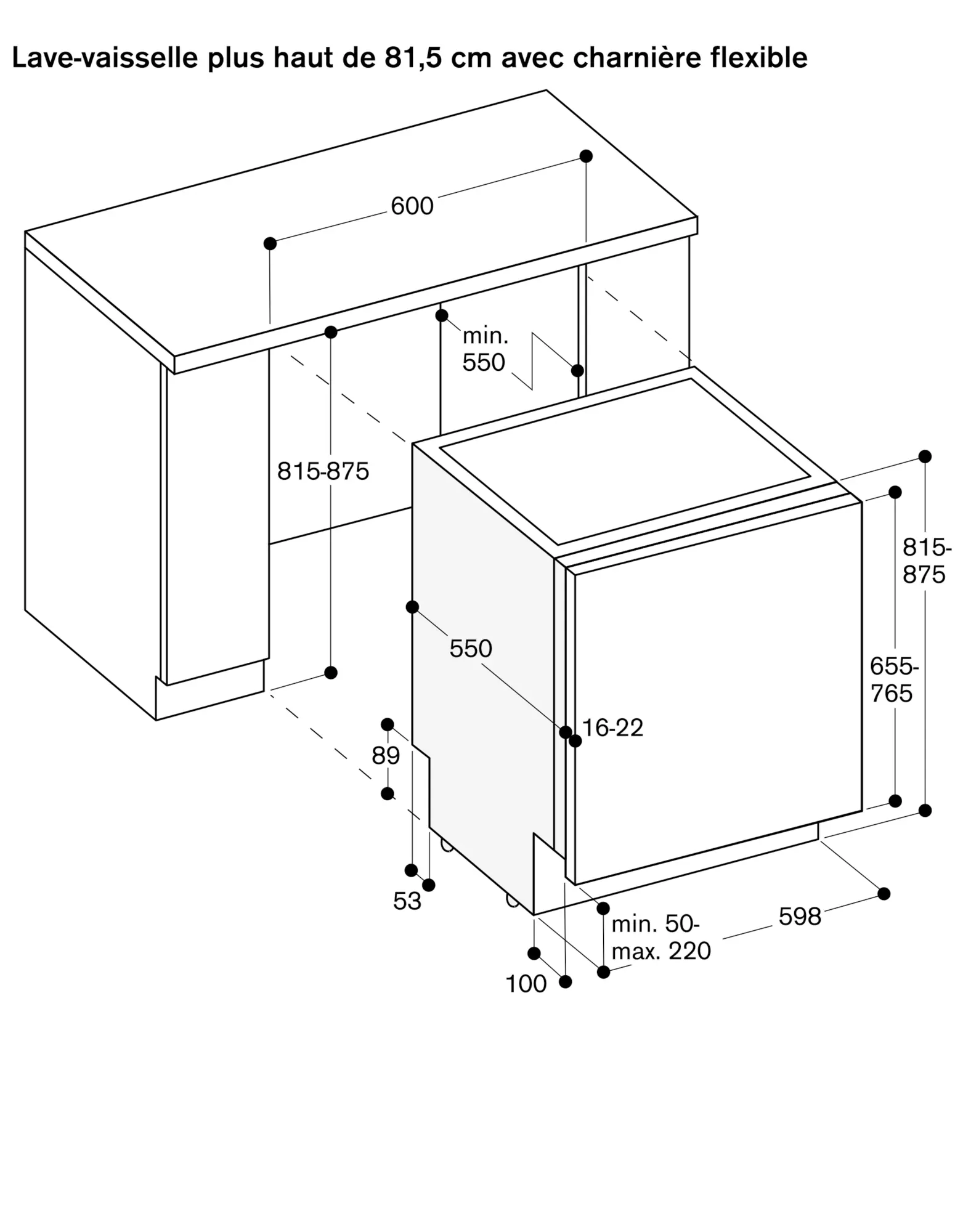 Dimensions des assiettes maximales (panier supérieur/inférieur) pour lave-vaisselle hauteur 81,5 cm : 27/25, 24.5/27.5 ou 22/31 cm.