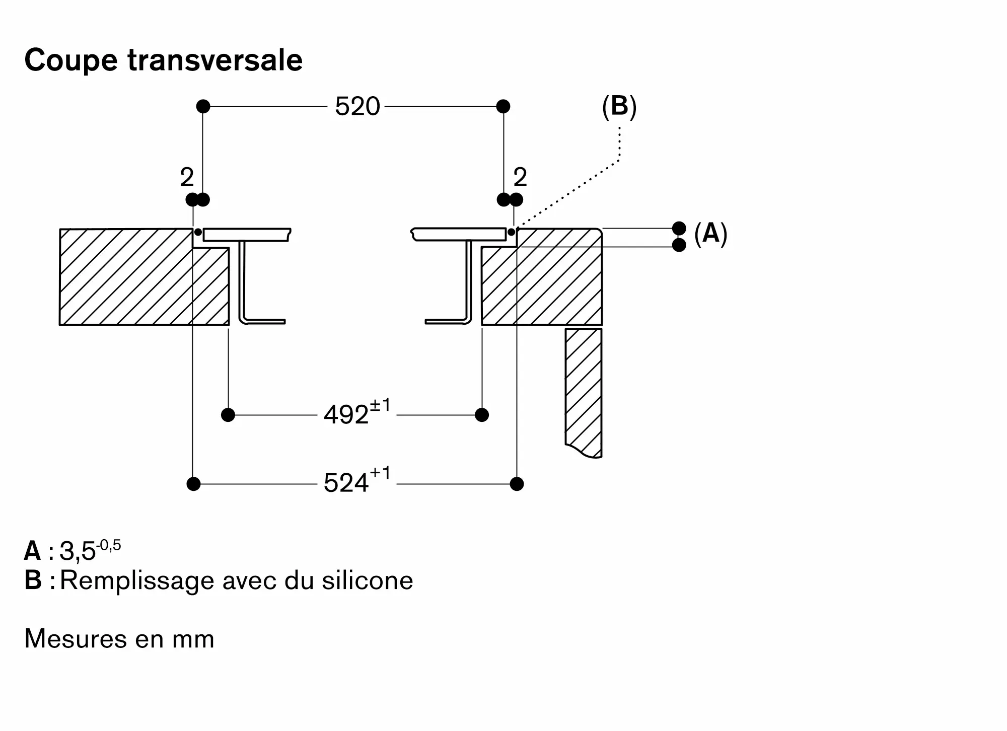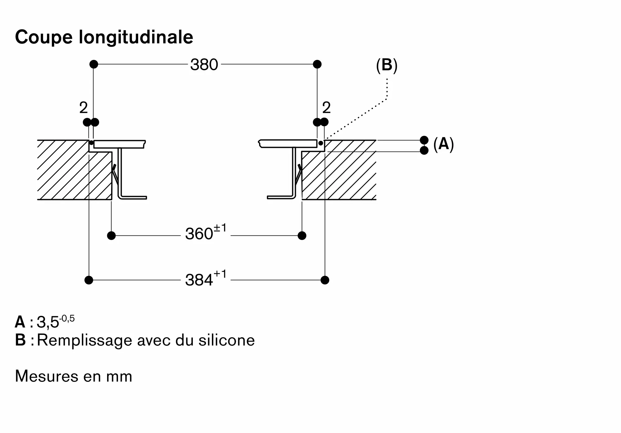 La rainure doit être continue et de niveau, pour assurer une installation uniforme des appareils sur le joint. Ne pas utiliser de joints de regarnissage par le dessous.