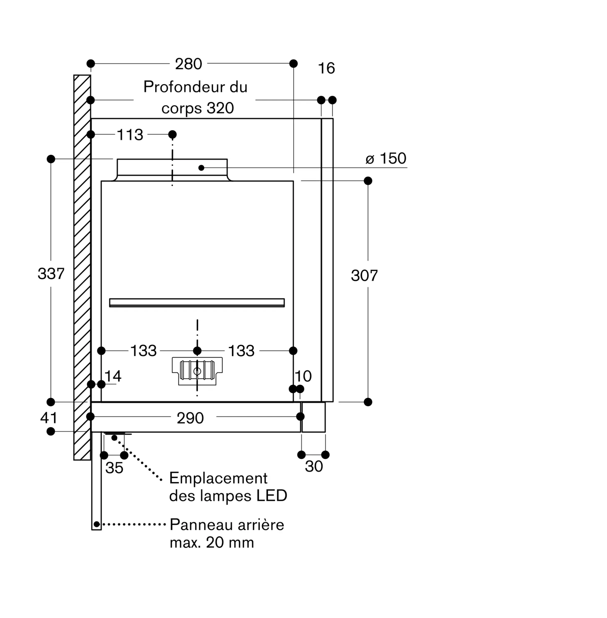 La profondeur nécessaire de la cavité de l'armoire supérieure en combinaison avec le cadre rétractable est de 335 mm.