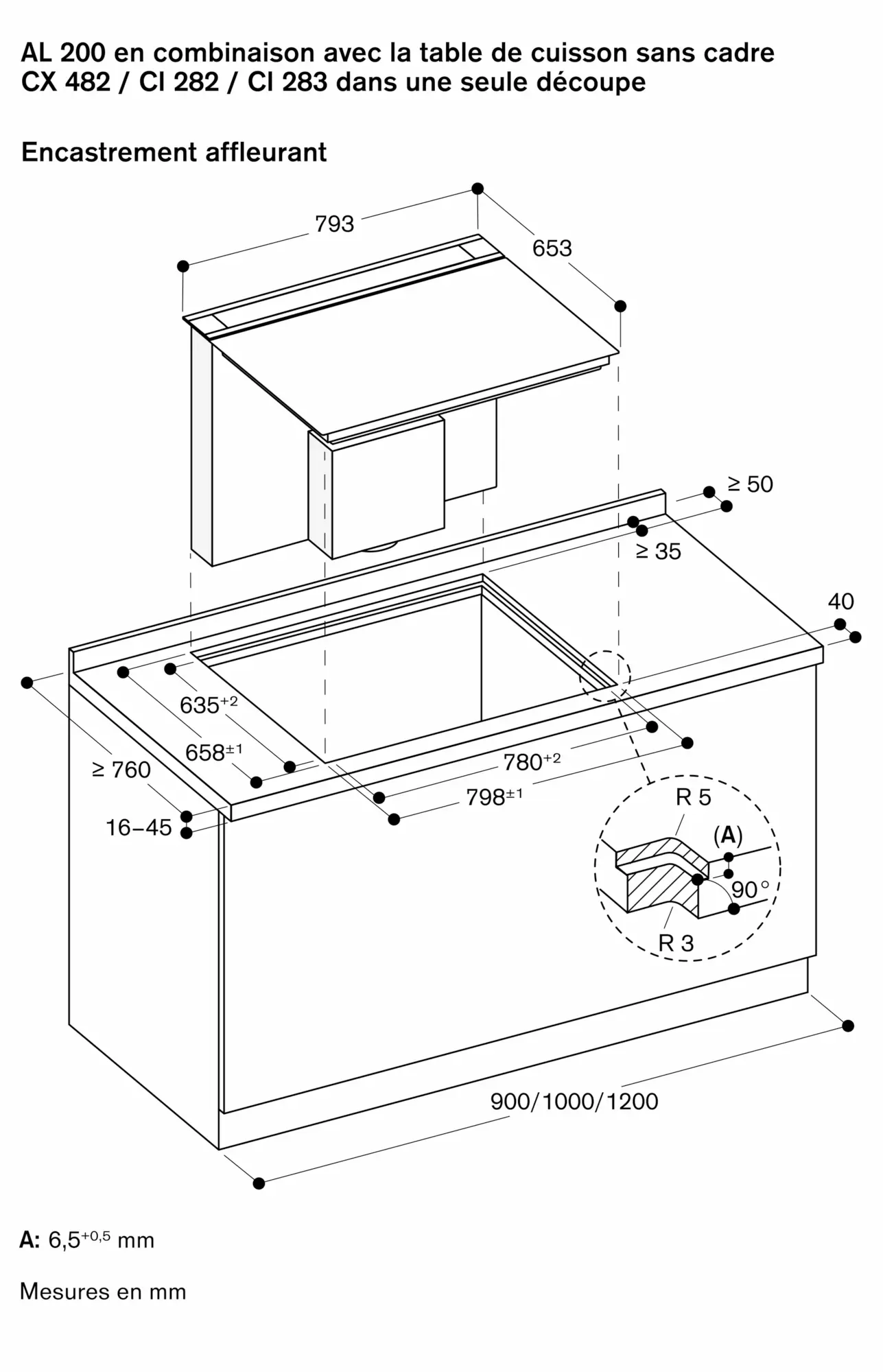 Compatible avec les tables induction sans cadre de la Série 400 (CX 482) ou de la Série 200 (CI 282 / CI 283), pour une installation à fleur de plan dans une seule découpe.