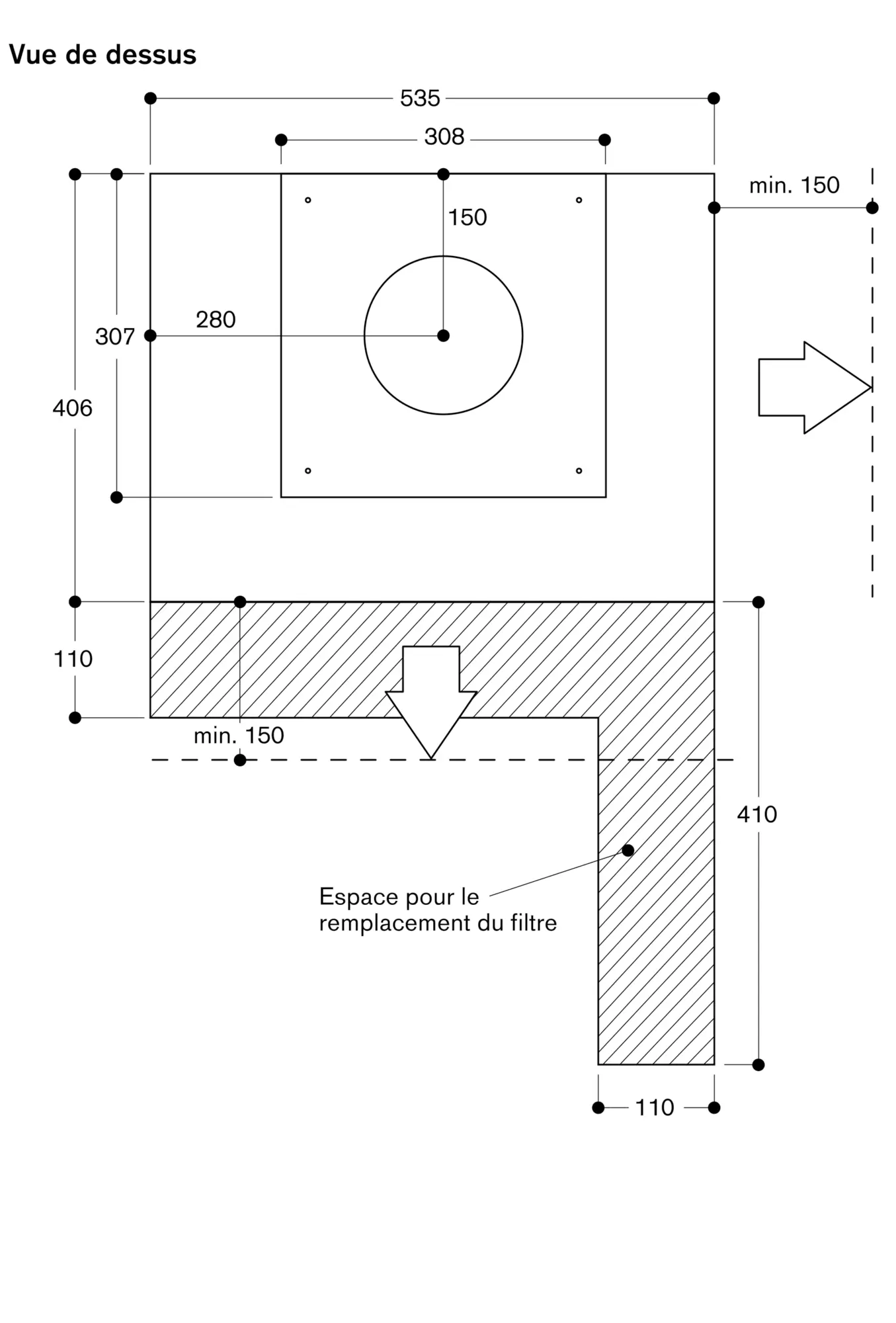 Pour une performance optimale en mode recyclage, nous recommandons une surface d'au moins 400 cm² pour la circulation de l'air recyclé.