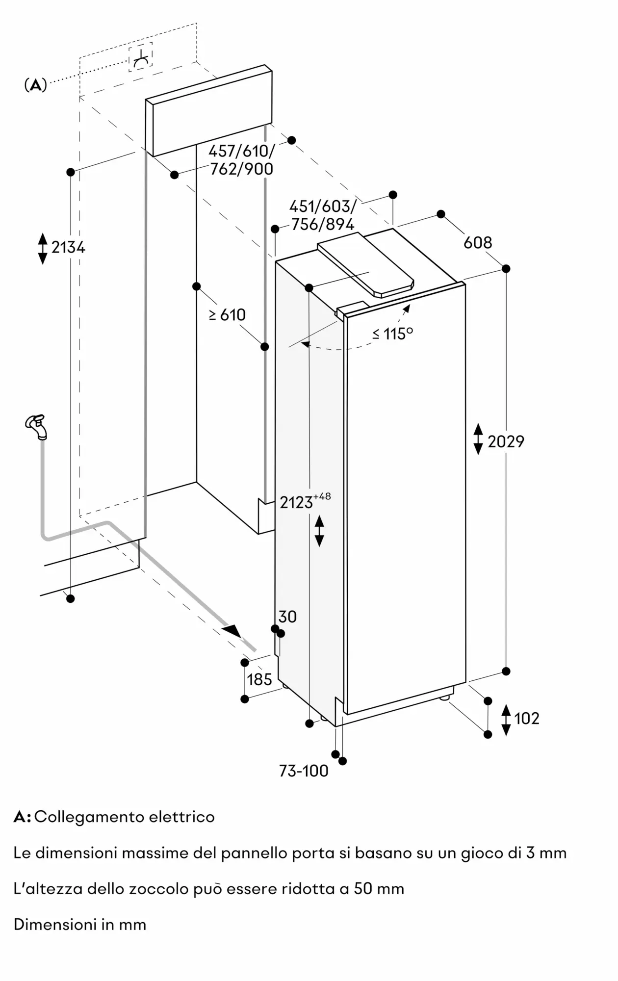 Con allacciamento all'acqua fissa (ingresso).