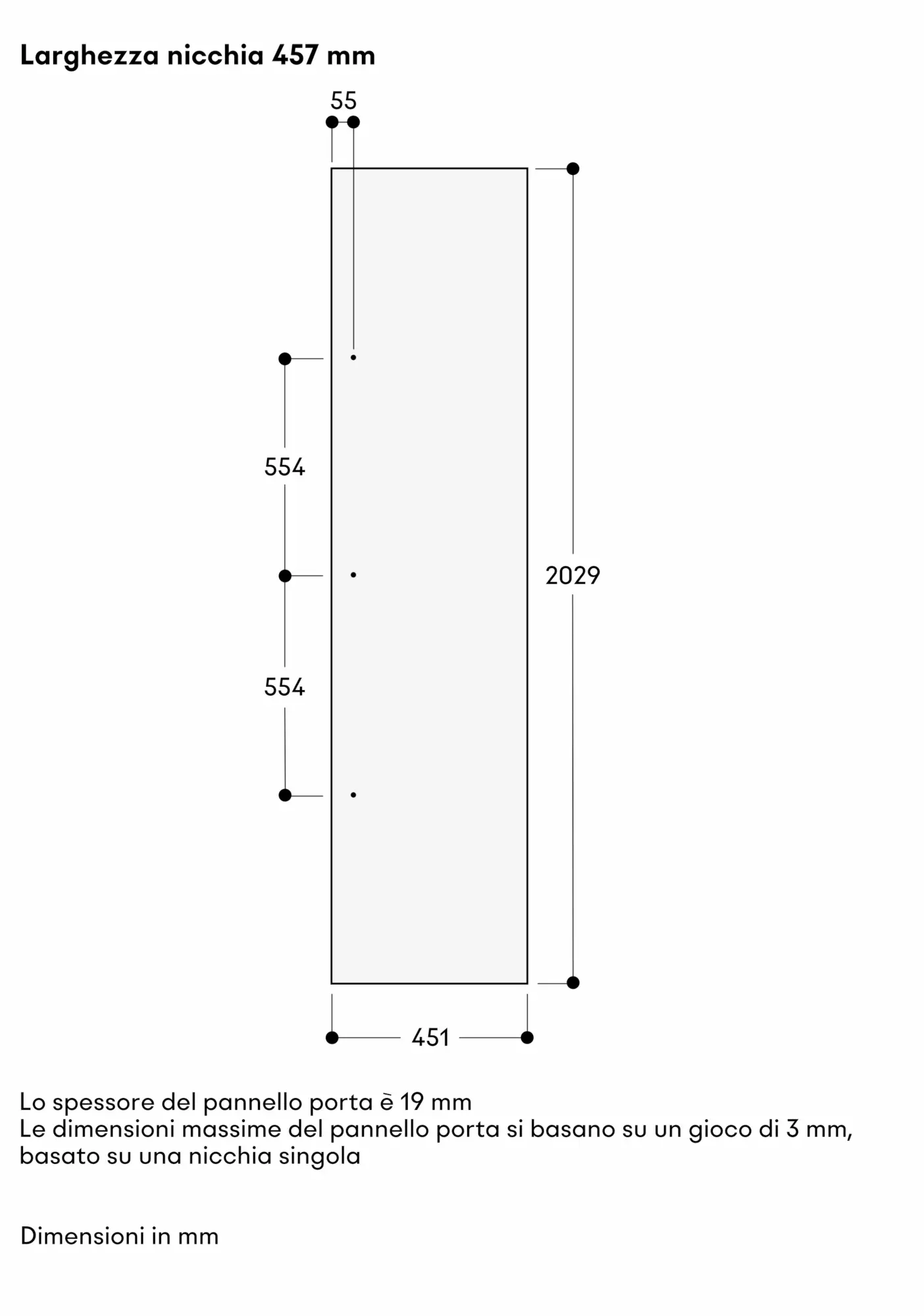 Peso max. pannelli porta 55 kg.