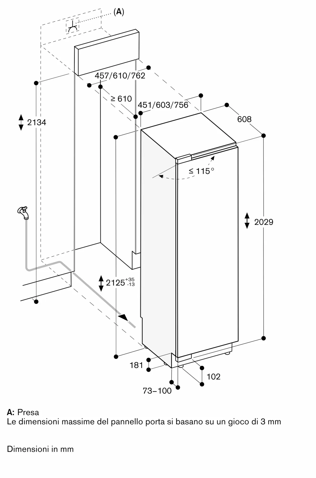 La valvola per il collegamento dell'acqua deve essere posizionata vicino all'apparecchio ed essere sempre accessibile.
