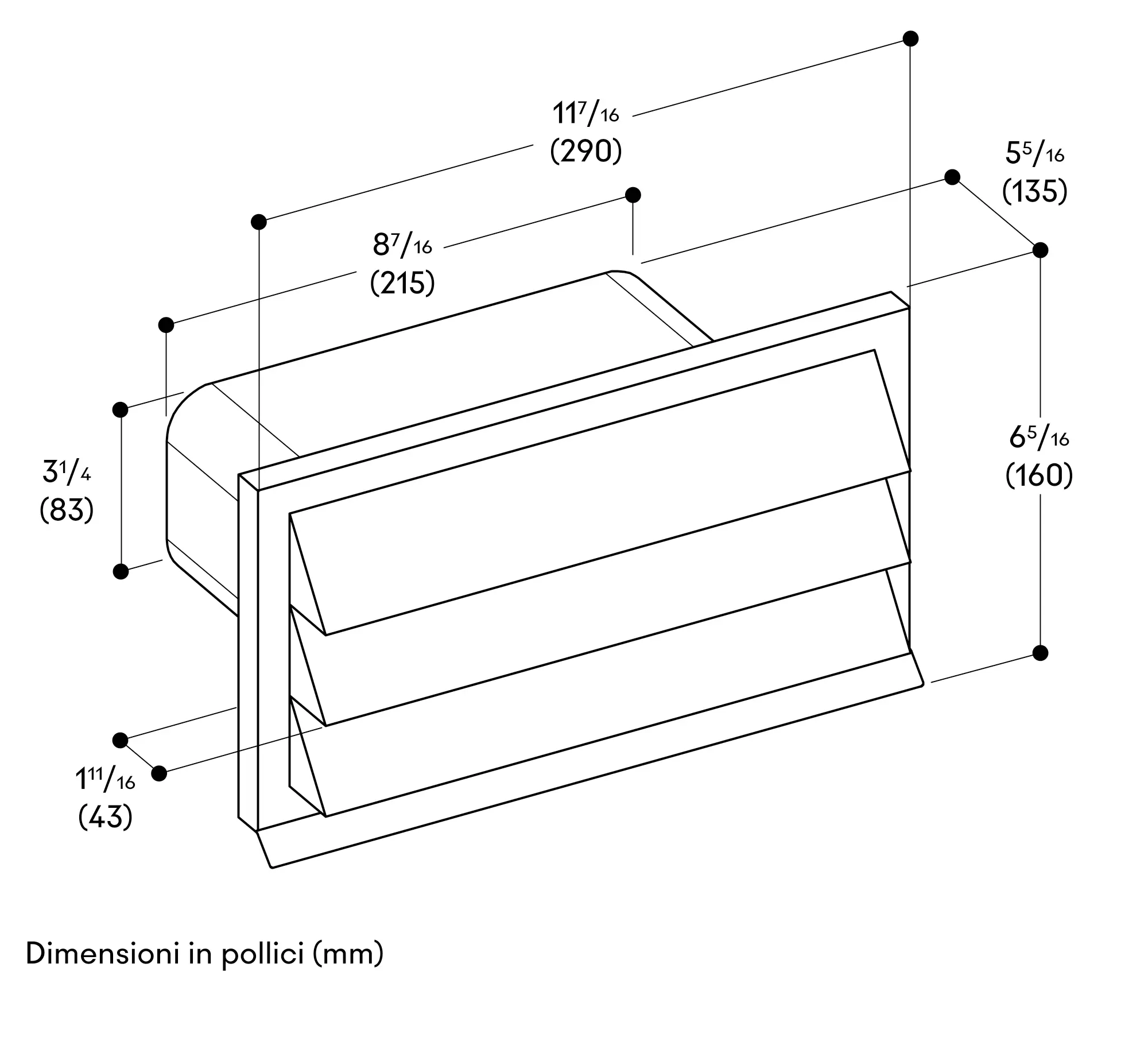 Piccola perdita di flusso d'aria dovuta alle ampie lamelle in acciaio inossidabile